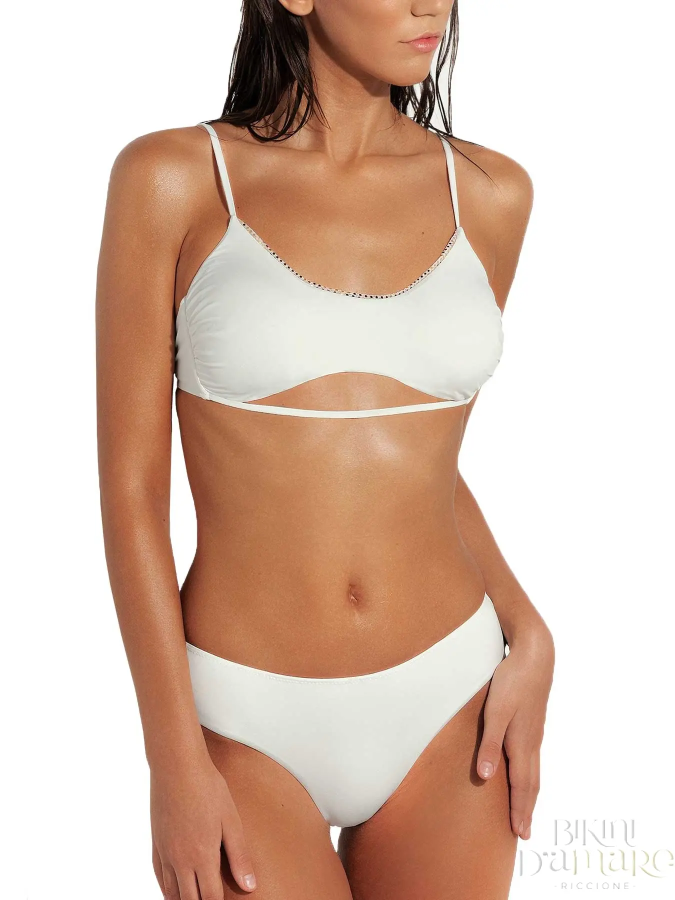 2Bekini Bikini Brassiere Profilo Mirror Oro con coppe estraibili Paillettes monocromatiche posizionate sul profilo interno del reggiseno Allacciatura al collo o bretella ed alla schiena con fiocco. Slip in microfibra con lacci laterali regolabili o culotte. Non provoca irritazioni E’ particolarmente adatto alle coppe A, B. Le paillettes che impreziosiscono questo bikini rendono il capo […]