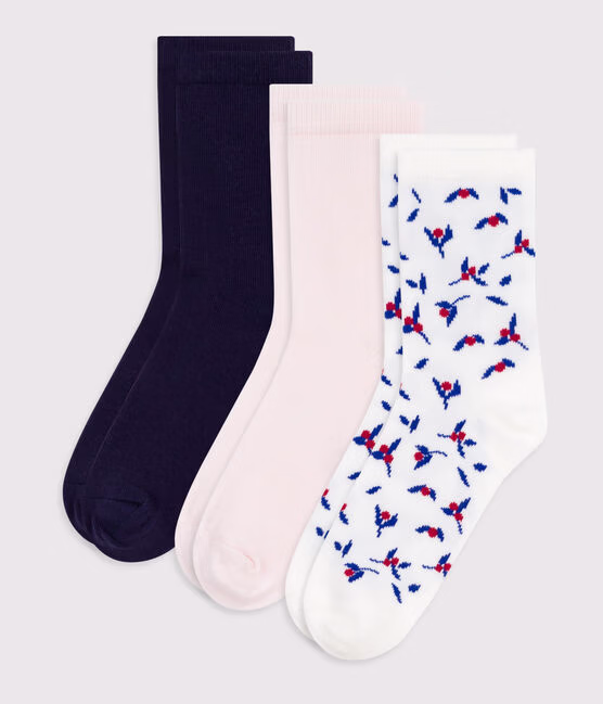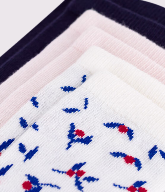 3 paia di calzini in cotone tinta unita con stampa a fiori bambina