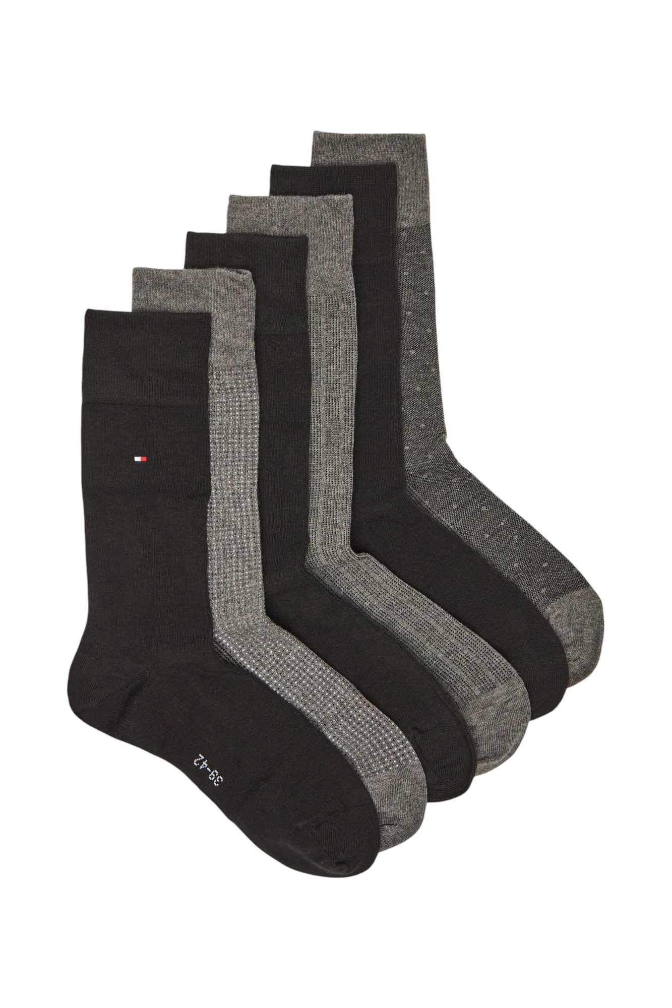 TOMMY HILFIGER6-Pack di calze da uomo in cotone a fantasia con logo laterale.Composizione63% cotone36% poliammide1% elastane Cod_Art: 701229781