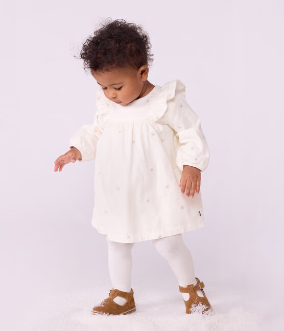 Abito bambina in velluto sottile a costine, comodo e trendy, ideale per l’inverno. Stelle brillanti ricamate su tutto l’abito. Modello ampio. Facile da indossare grazie all’apertura con bottoni sulla schiena. La modella รจ alta 74 cm e indossa la taglia 12 mesi. Ref A0E6901000 Composizione e materiali Articolo : 98%Cotone 2%Poliestere Fodera 100%Cotone Prodotto certificato […]