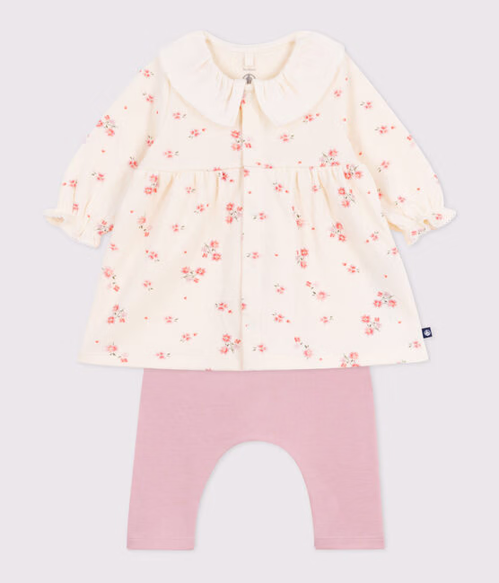 Abito con colletto e stampa a fiori, leggings in cotone neonato