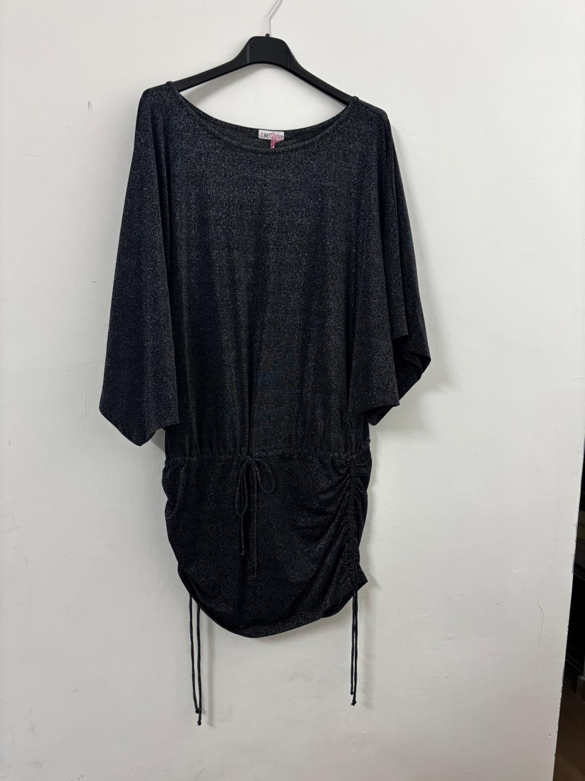 Abito corto lurex con coulisse in vita