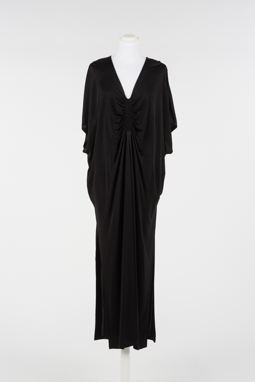 Abito lungo elegante Twinset da donna con drappeggio centrale, colore nero. Vestibilitร femminile, disponibile dalla M alla XXL. Perfetto per occasioni formali ed eventi importanti.