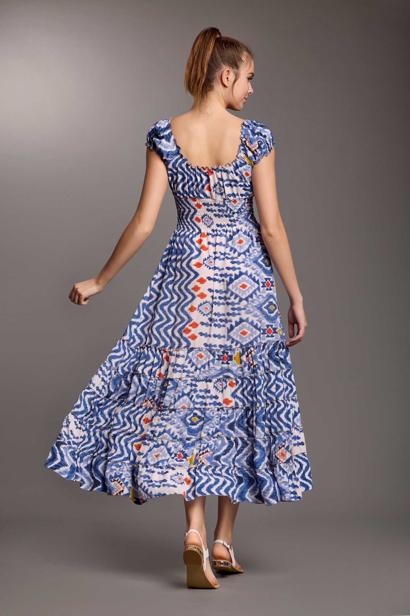 Lasciati conquistare dallโeleganza estiva dellโAbito Lungo Iconique in Cotone, un capo iconico perfetto per accompagnarti durante tutta la stagione calda. Realizzato in puro cotone, leggero e traspirante, questo abito รจ pensato per offrirti massimo comfort con un tocco di raffinata femminilitร . La fantasia a maiolica nei toni del blu e del bianco richiama il fascino autentico del Mediterraneo, con richiami visivi alle ceramiche tradizionali delle isole greche e della costa italiana.