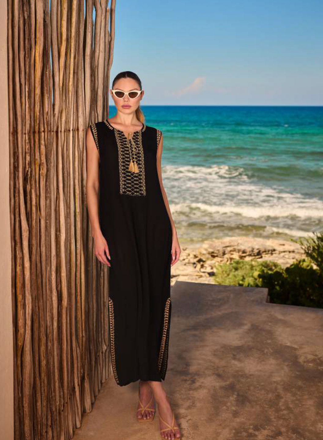 L’abito è pensato per essere indossato sia con sandali flat che con un tacco leggero, permettendoti di adattarlo al tuo stile e al tipo di evento. Può essere impreziosito con accessori dorati o in rafia per un look bohémien elegante, oppure con una cintura per enfatizzare la vita.