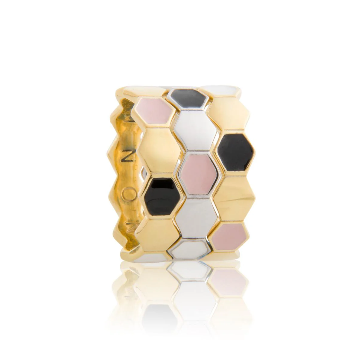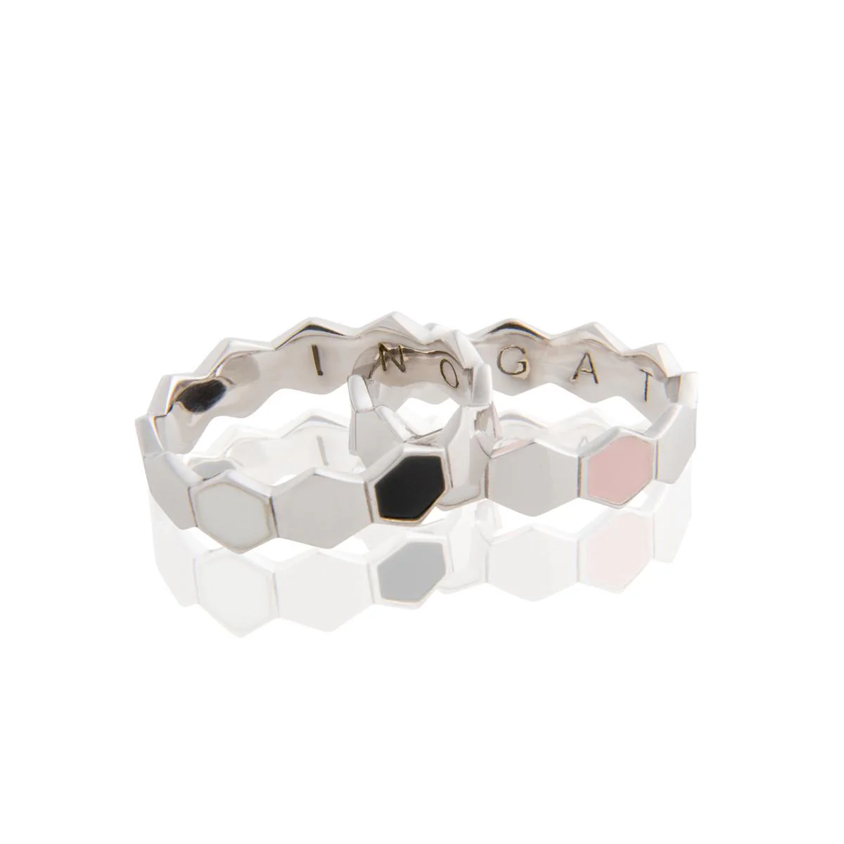 - Gioiello in argento 925 con lavorazione di CNC e smalto a freddo, finitura galvanica a spessore e colore rodio.