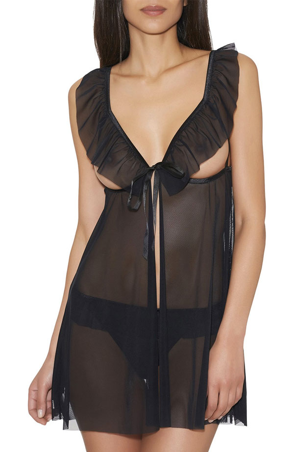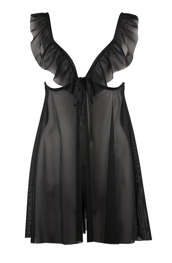 Discover a babydoll and thong set with flirty frills and lacing in the new magnetic Boite à Désir box set from Aubade.