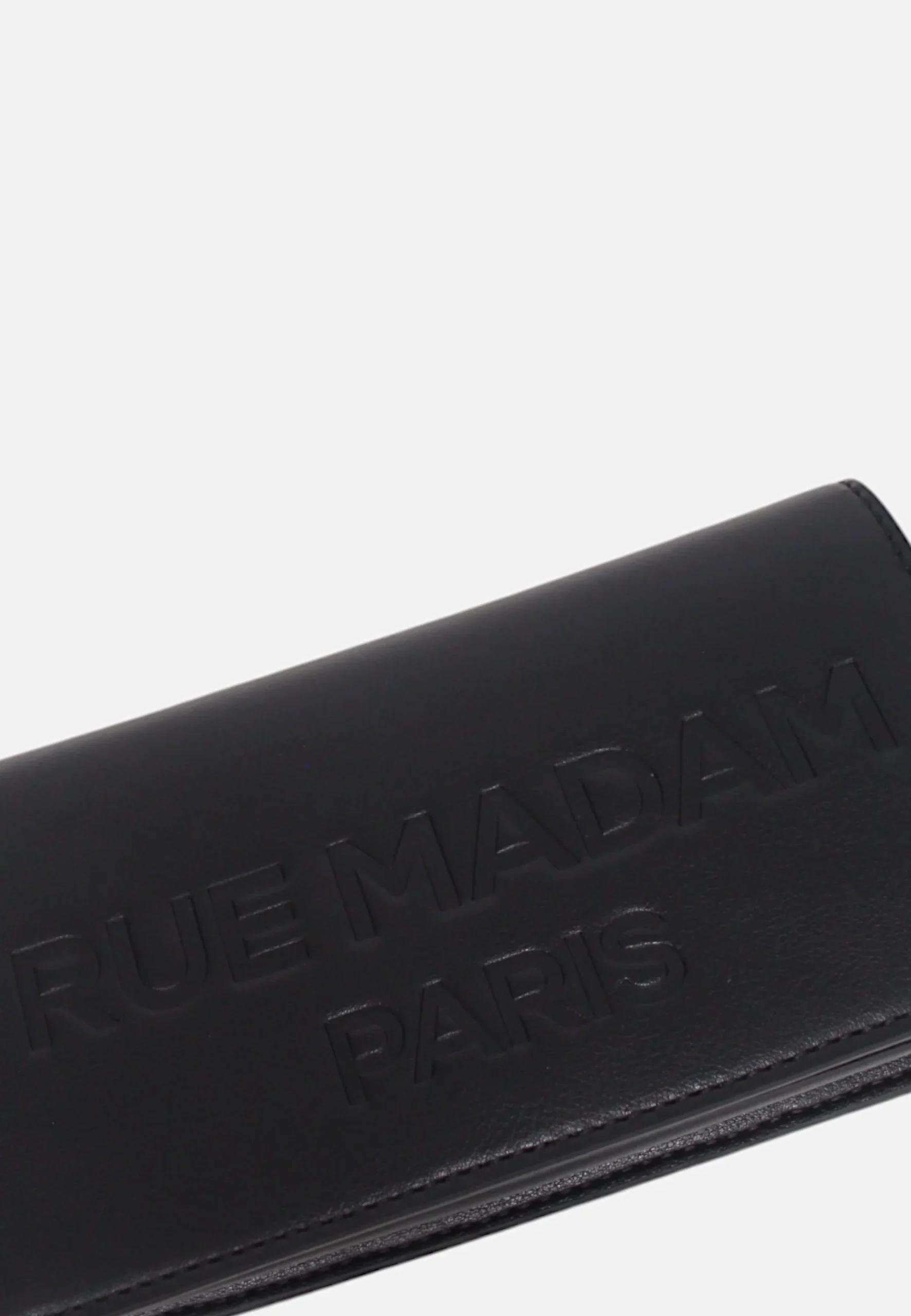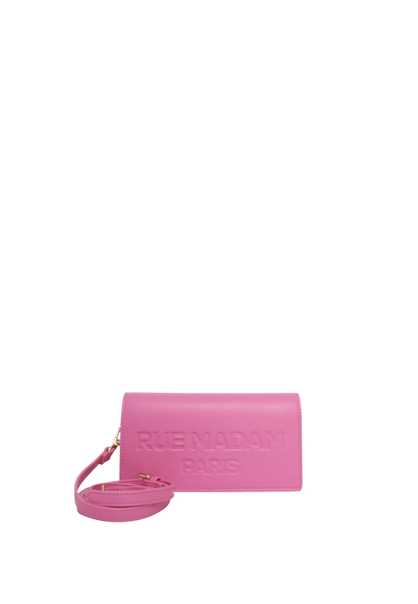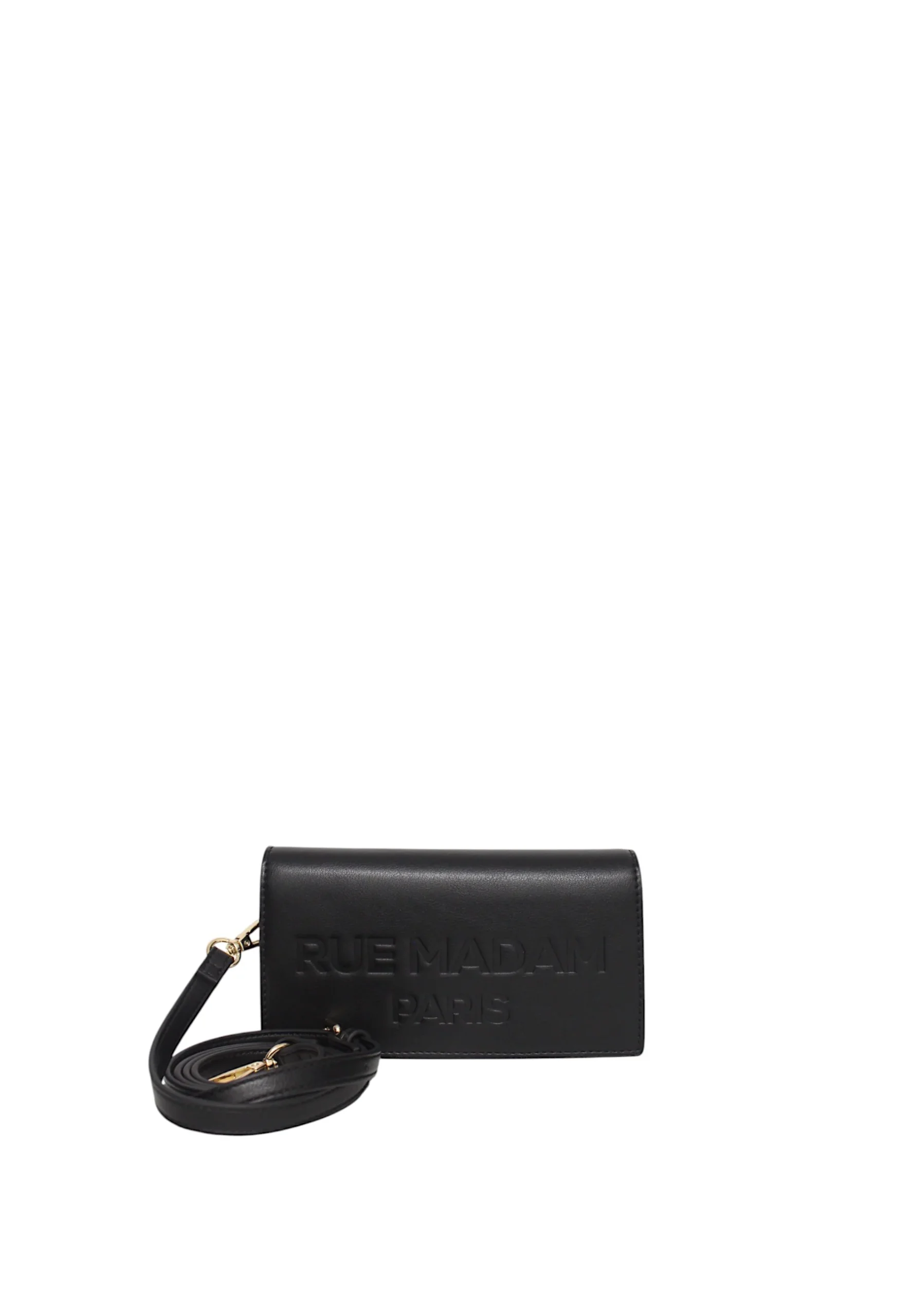 RUE MADAMBorsa a tracolla porta smartphone in ecopelle vegan con logo goffrato tono su tono e spazio portacarte, chiusura centrale con clip magnetica e tracolla removibile, fodera interna in cotone con tasche porta carte e multiuso..Misure Lunghezza 19 cmAltezza 10 cmProfonditร  5 cm Cod_Art: THECASE