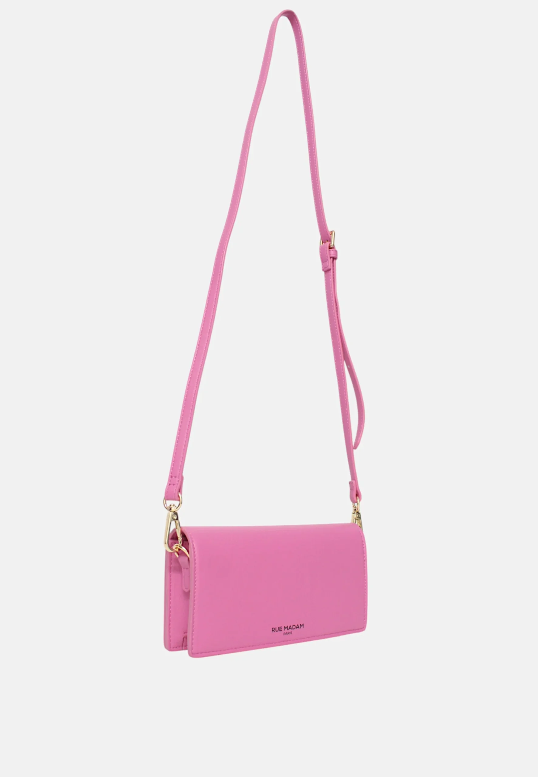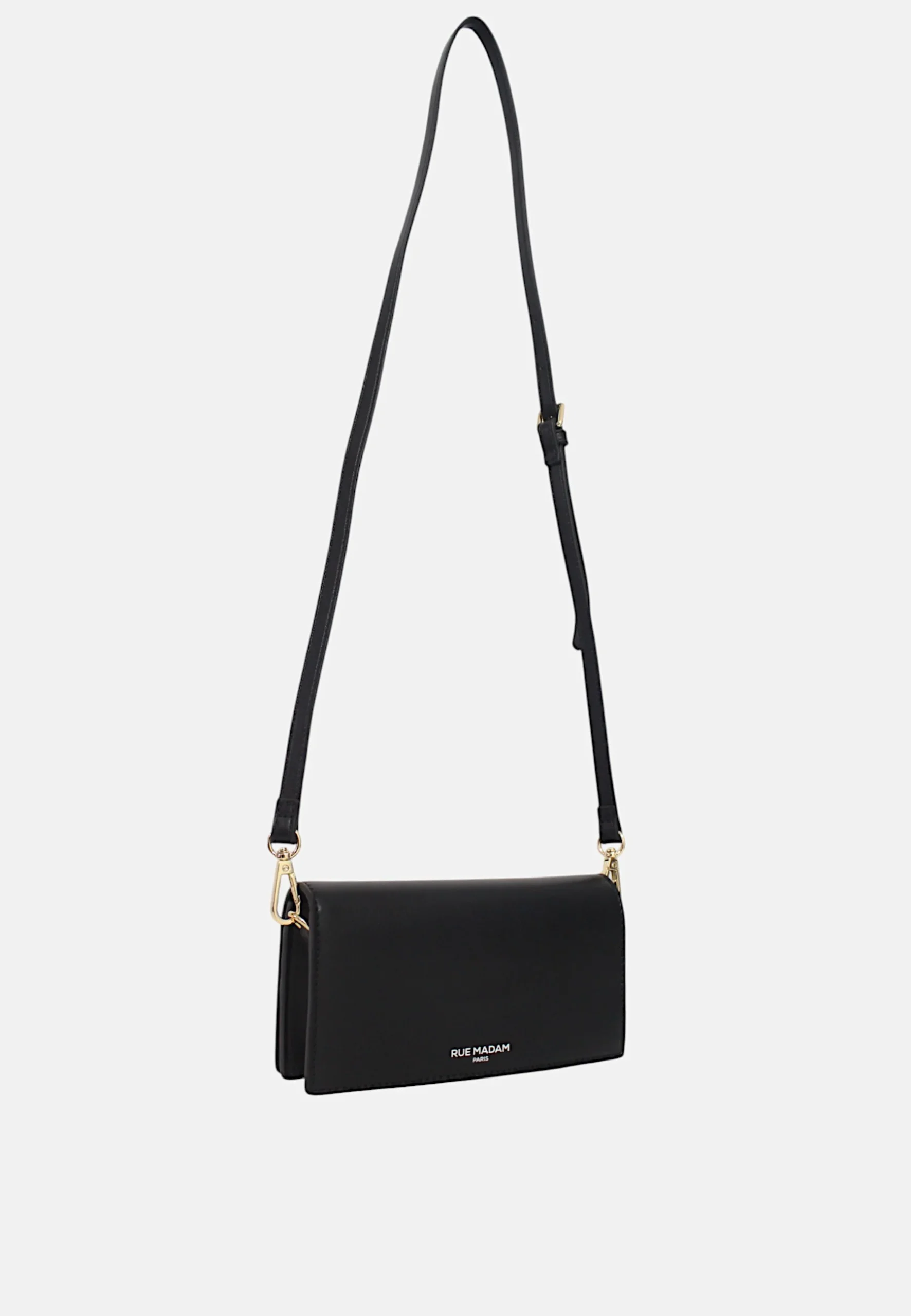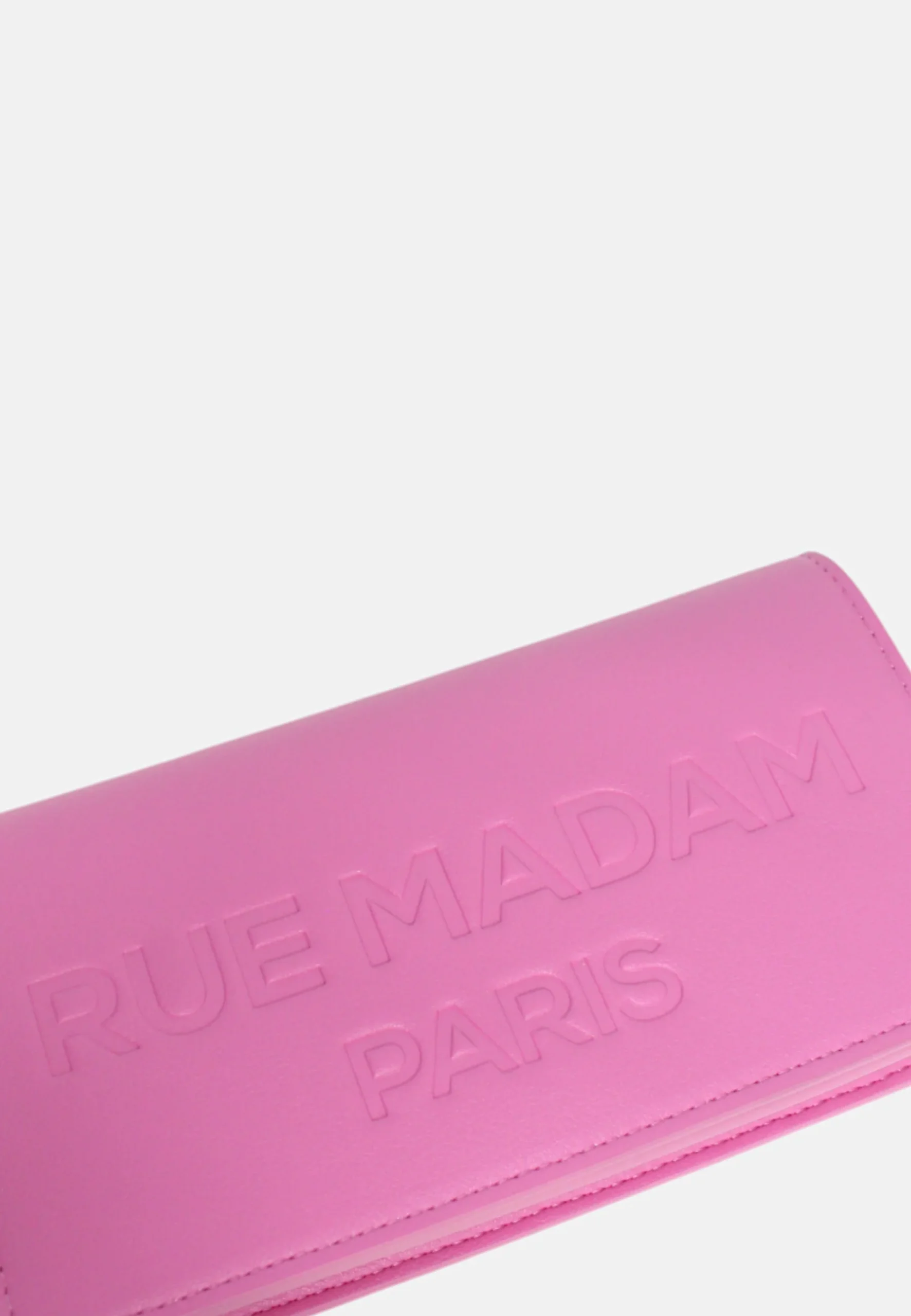 RUE MADAMBorsa a tracolla porta smartphone in ecopelle vegan con logo goffrato tono su tono e spazio portacarte, chiusura centrale con clip magnetica e tracolla removibile, fodera interna in cotone con tasche porta carte e multiuso..Misure Lunghezza 19 cmAltezza 10 cmProfonditร  5 cm Cod_Art: THECASE