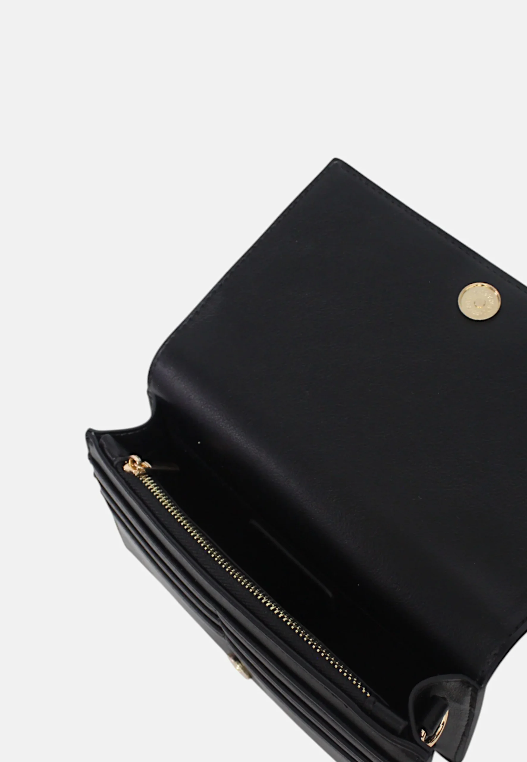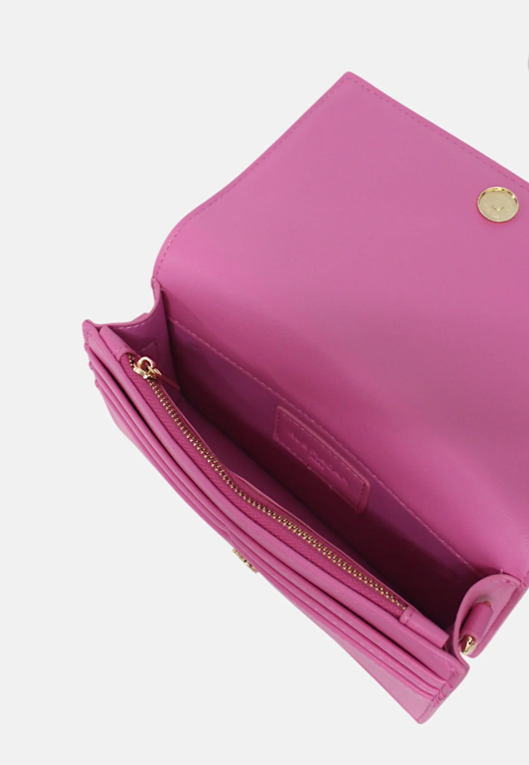 Borsa a tracolla porta smartphone in ecopelle vegan con logo goffrato tono su tono e spazio portacarte, chiusura centrale con clip magnetica e tracolla removibile, fodera interna in cotone con tasche porta carte e multiuso..