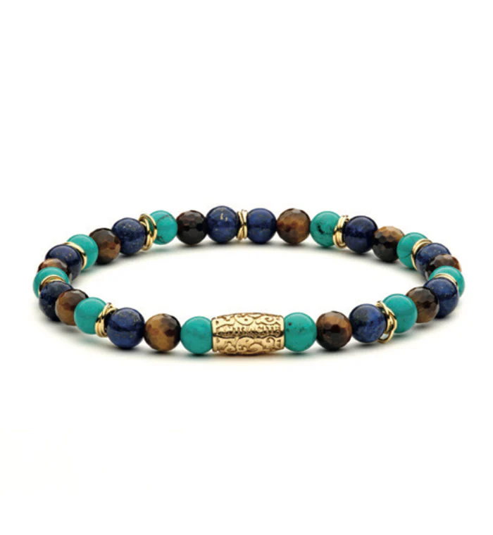 Pietre Bracciale: Aulite turchese verde,occhio di tigre marrone, lapislazzuli – argento dorato 925โฐ