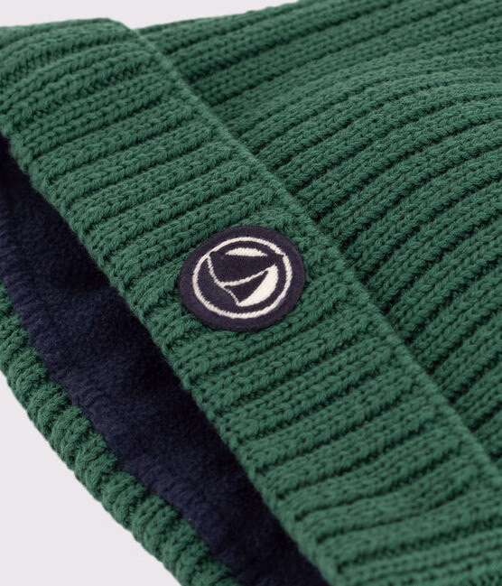 Cuffietta bambina in maglia di cotone con fodera in micropile, per tenere al calduccio i piรน piccini.