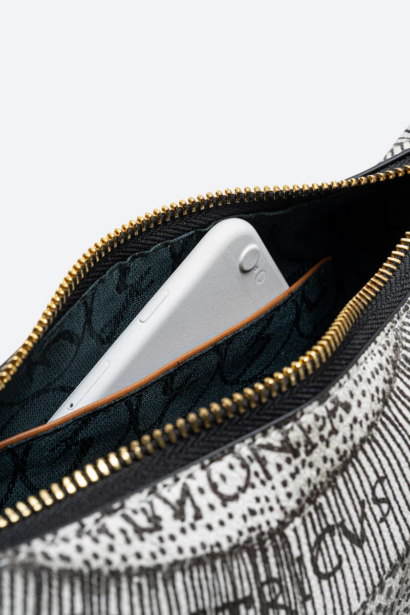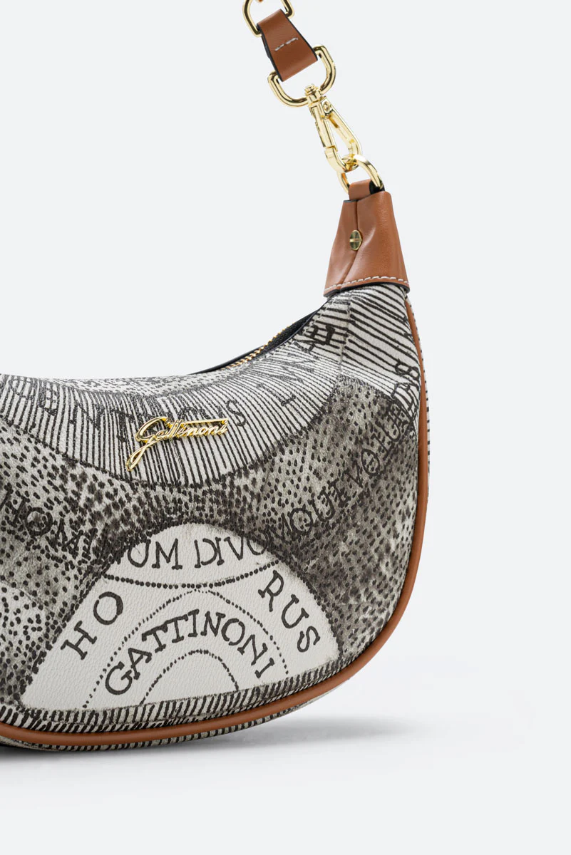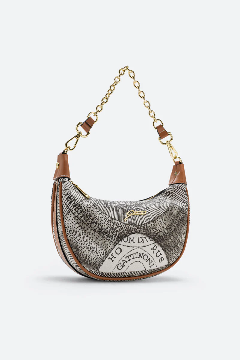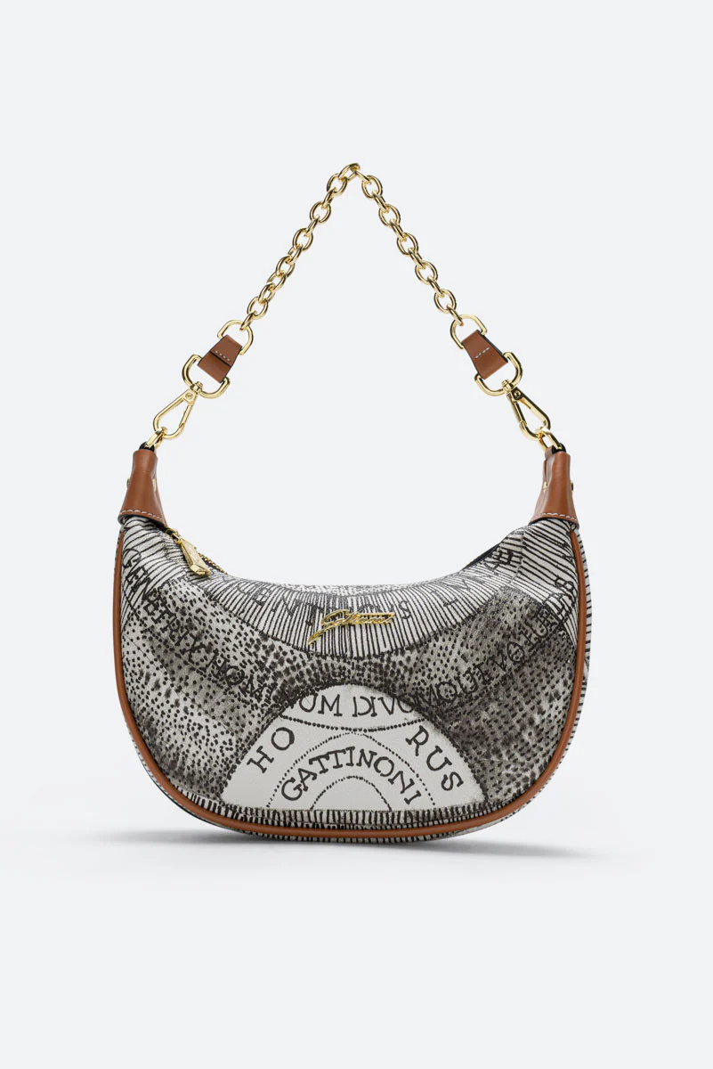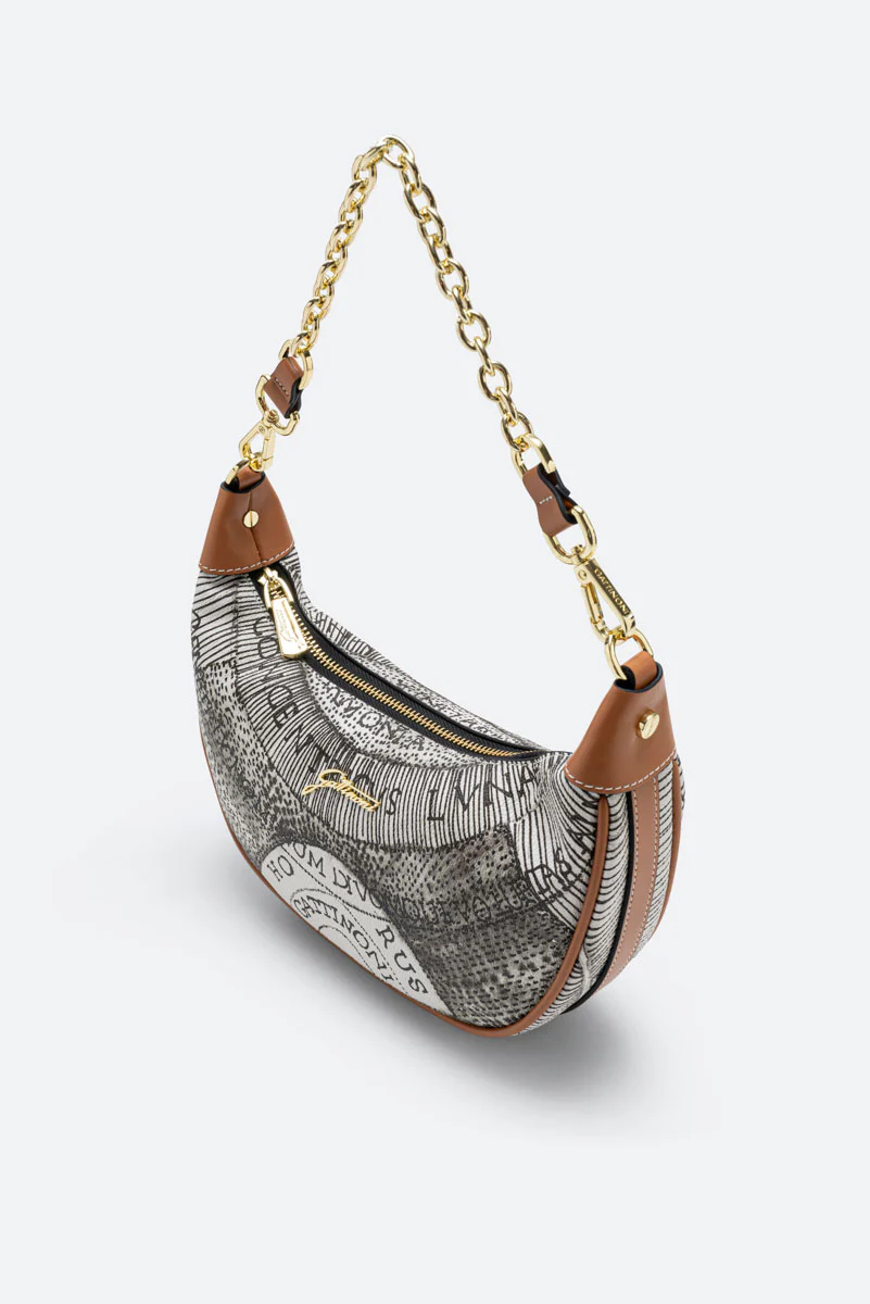 Scoprite la bellezza senza tempo della borsa Planetarium S. Hobo di Gattinoni, un capolavoro di eleganza e sofisticatezza. Incarnazione del patrimonio stilistico del marchio, questa borsa a spalla è realizzata in PVC Planetarium e pelle, in una raffinata tonalità Ink Sepia. Il disegno Planetarium, tipico dell’universo Gattinoni, esprime un senso di infinito ed evoca la vocazione cosmopolita del brand. La tracolla regolabile e amovibile offre versatilità , mentre l’interno multicolore rivela un’organizzazione meticolosa, con una tasca interna con zip e altre quattro tasche senza zip. Sigillata dalla chiusura a zip e abbellita dal logo di Gattinoni, questa borsa non ha piedini sul fondo per conservare la sua linea elegante e pulita. Una perfetta fusione di stile, funzionalità e l’indiscussa qualità Gattinoni. La borsa Planetarium S. Hobo è un vero e proprio viaggio nel glamour, un accessorio indispensabile per la donna moderna che apprezza lo stile classico con un tocco di modernità .