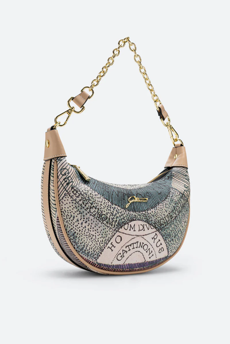 Scoprite la bellezza senza tempo della borsa Planetarium S. Hobo di Gattinoni, un capolavoro di eleganza e sofisticatezza. Incarnazione del patrimonio stilistico del marchio, questa borsa a spalla è realizzata in PVC Planetarium e pelle, in una raffinata tonalità di beige watercolor. Il disegno Planetarium Watercolor, tipico dell’universo Gattinoni, esprime un senso di infinito ed evoca la vocazione cosmopolita del brand. La tracolla regolabile e amovibile offre versatilità , mentre l’interno multicolore rivela un’organizzazione meticolosa, con una tasca interna con zip e altre 41 tasche senza zip. Sigillata dalla chiusura a zip e abbellita dal logo di Gattinoni, questa borsa non ha piedini sul fondo per conservare la sua linea elegante e pulita. Una perfetta fusione di stile, funzionalità e l’indiscussa qualità Gattinoni. La borsa Planetarium S. Hobo è un vero e proprio viaggio nel glamour, un accessorio indispensabile per la donna moderna che apprezza lo stile classico con un tocco di modernità .