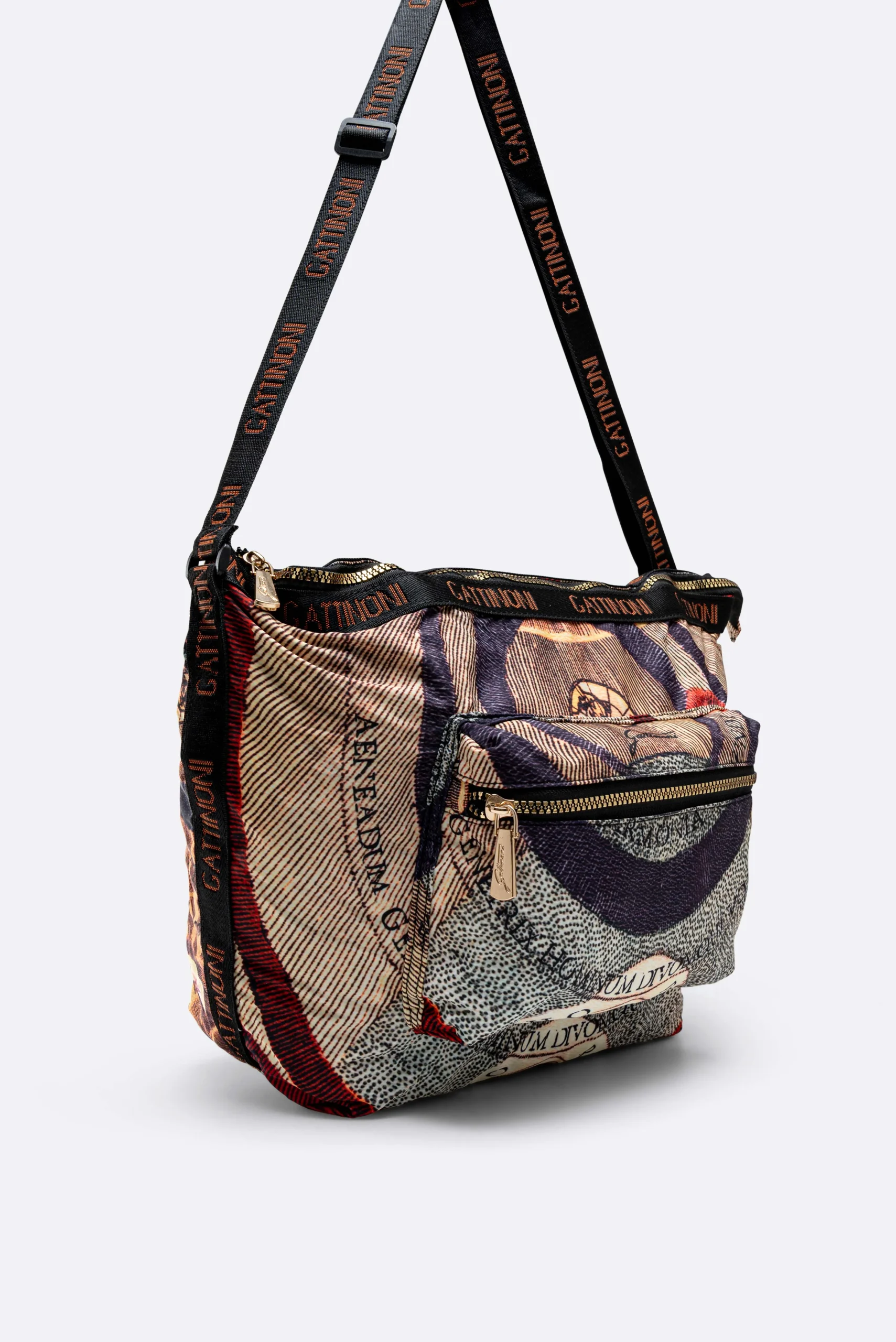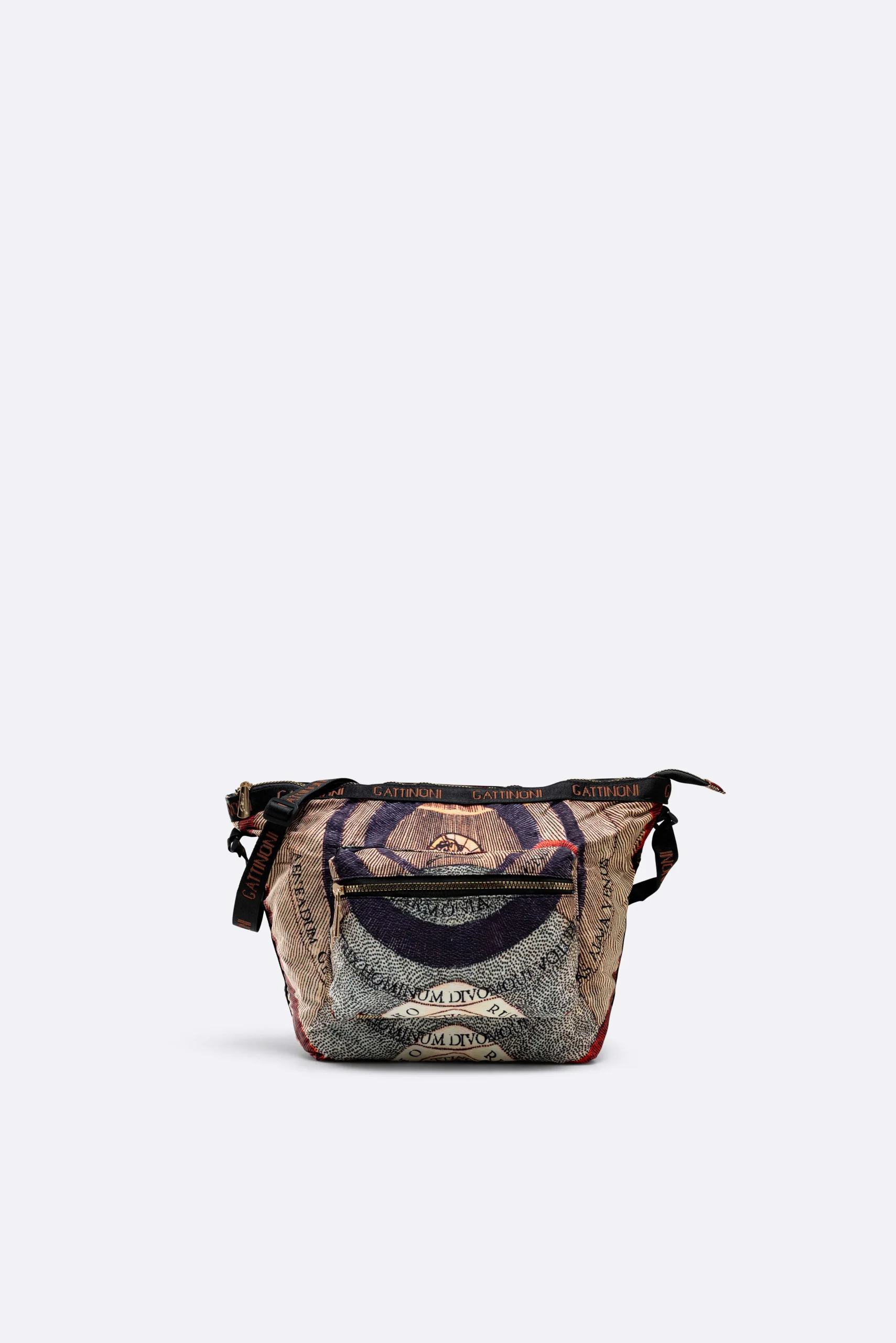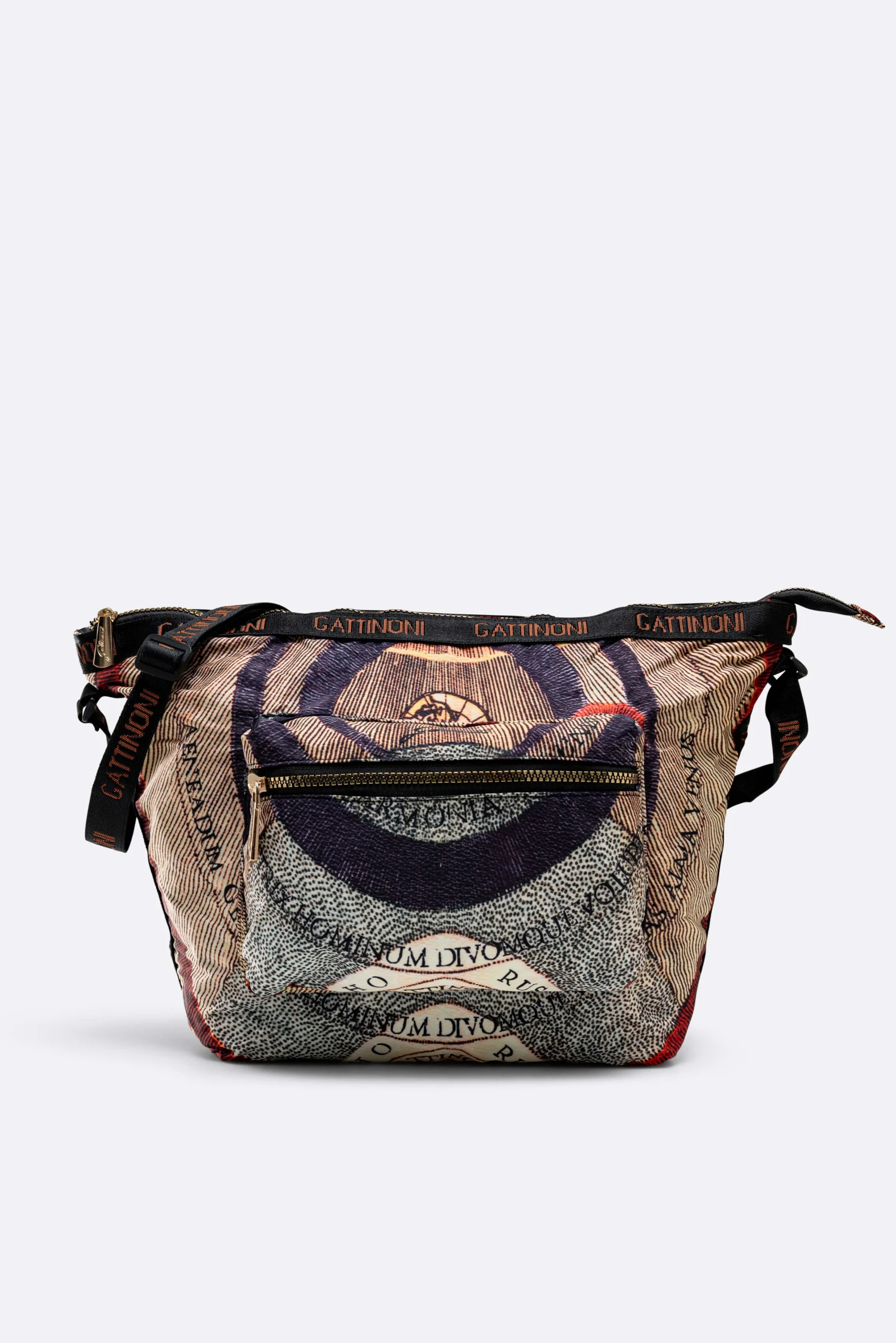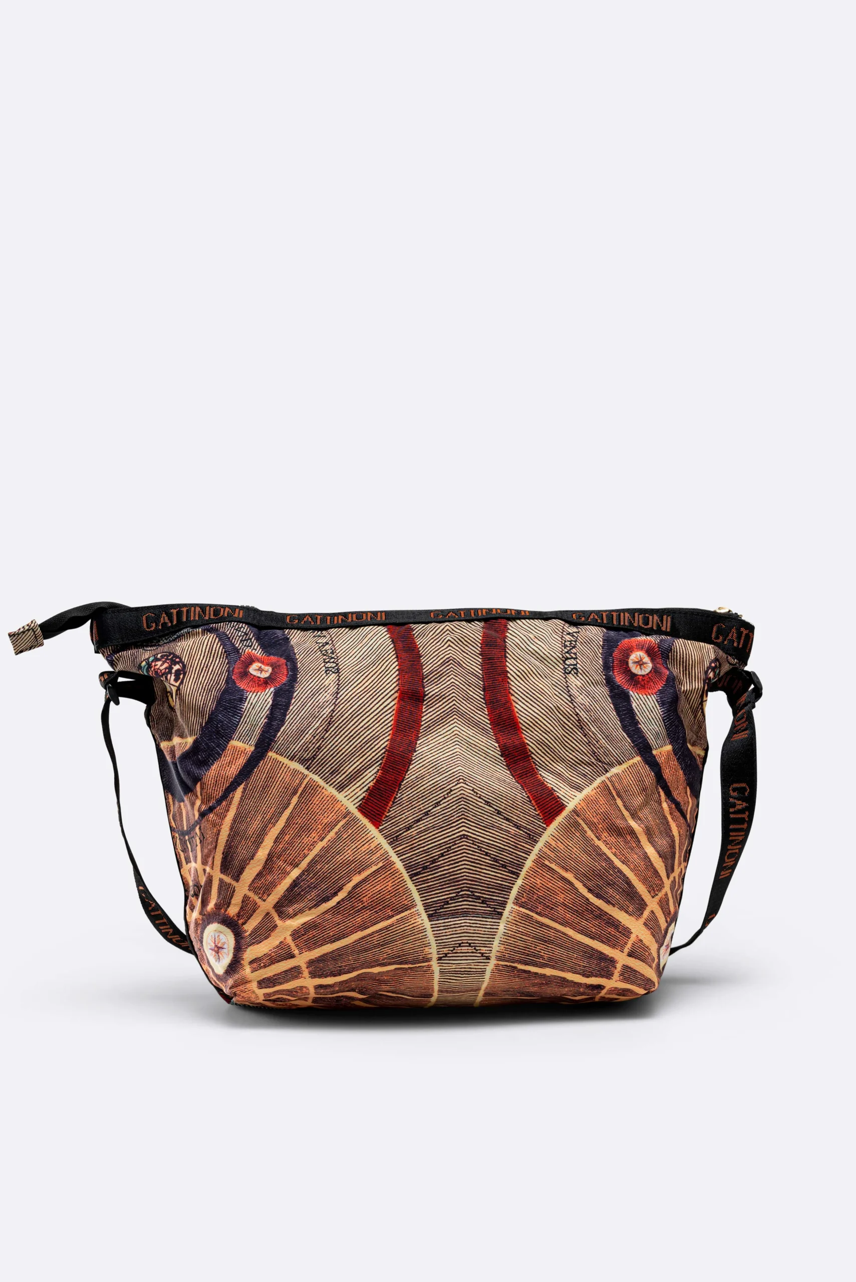 Borsa a tracolla in tessuto tecnico Planetarium Classic della serie Easychic. La borsa รจ costruita per essere ripiegata su se stessa e chiusa con una zip, diventando di ridotte dimensioni, molto utile nei contesti di viaggio. La tasca che viene utilizzata come alloggio quando la borsa รจ ripiegata funge da tasca portaoggetti quando la borsa รจ aperta. Chiusa con una zip, ha una tracolla in gross grain personalizzato Gattinoni.