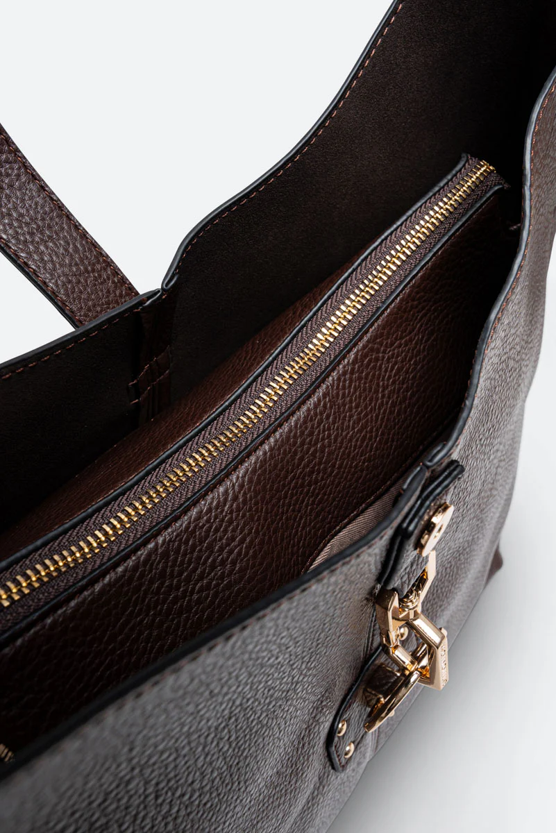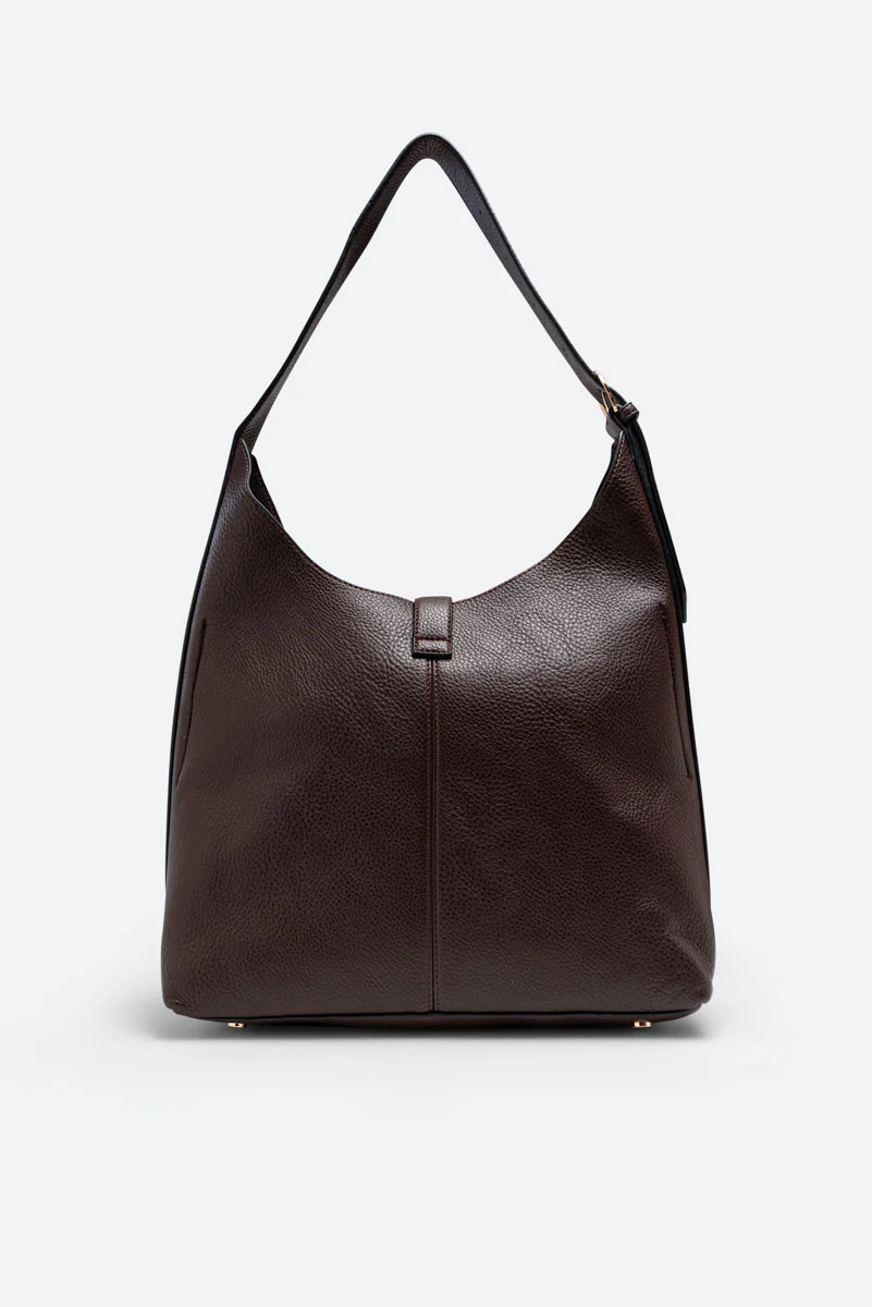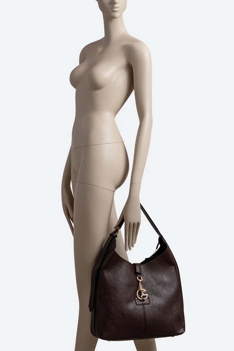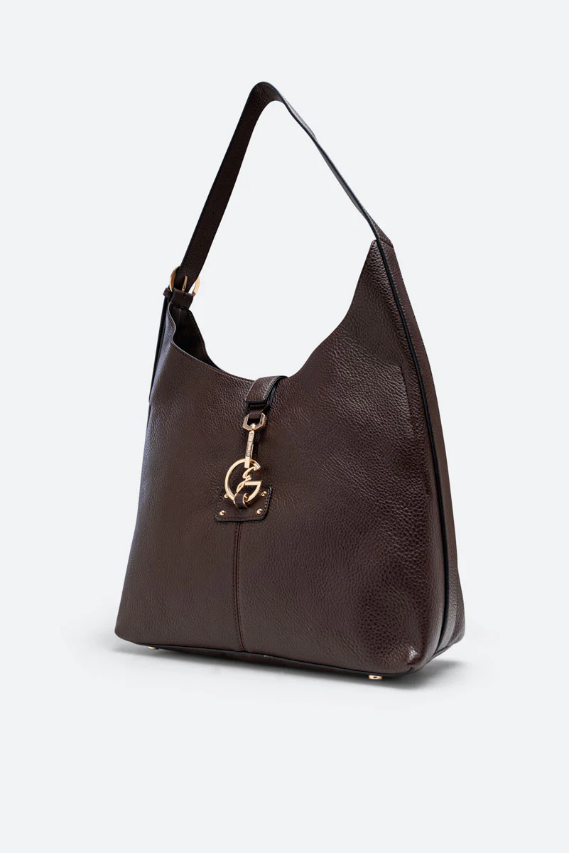 Borsa hobo capiente in pelle effetto martellato con logo metallico frontale e manico singolo. Design morbido e sofisticato per unโeleganza quotidiana.