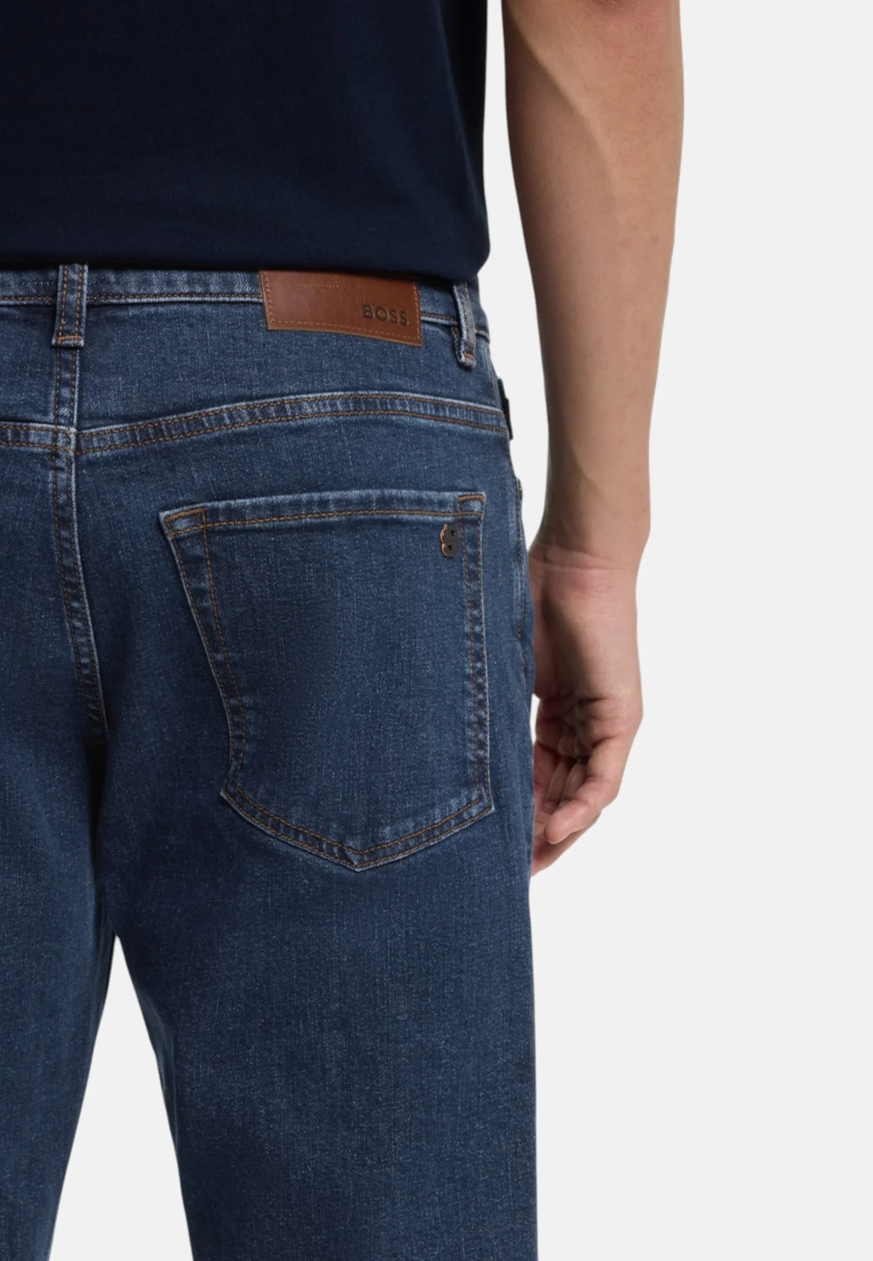 Con scoloriture naturali su autentico denim blu elasticizzato, questi jeans BOSS Uomo sono un classico casual. Vestibilitร straight fit con gamba affusolata.