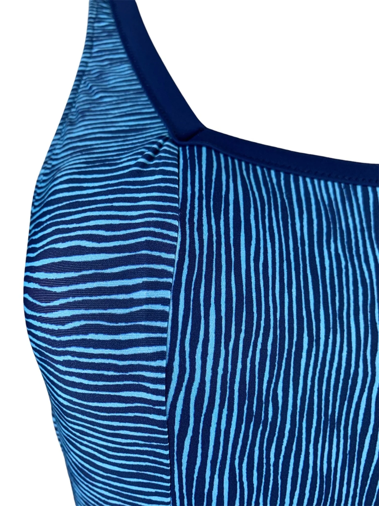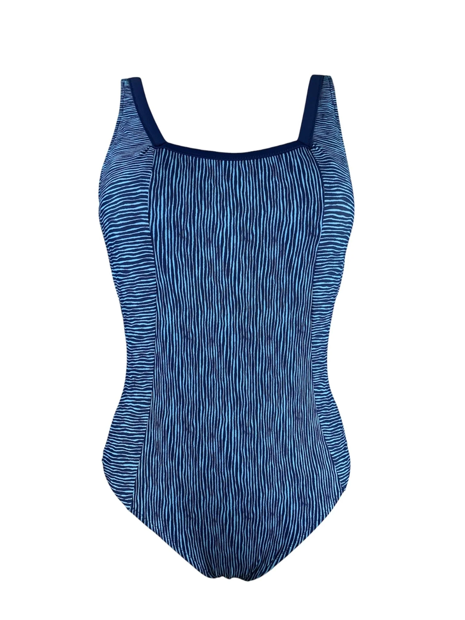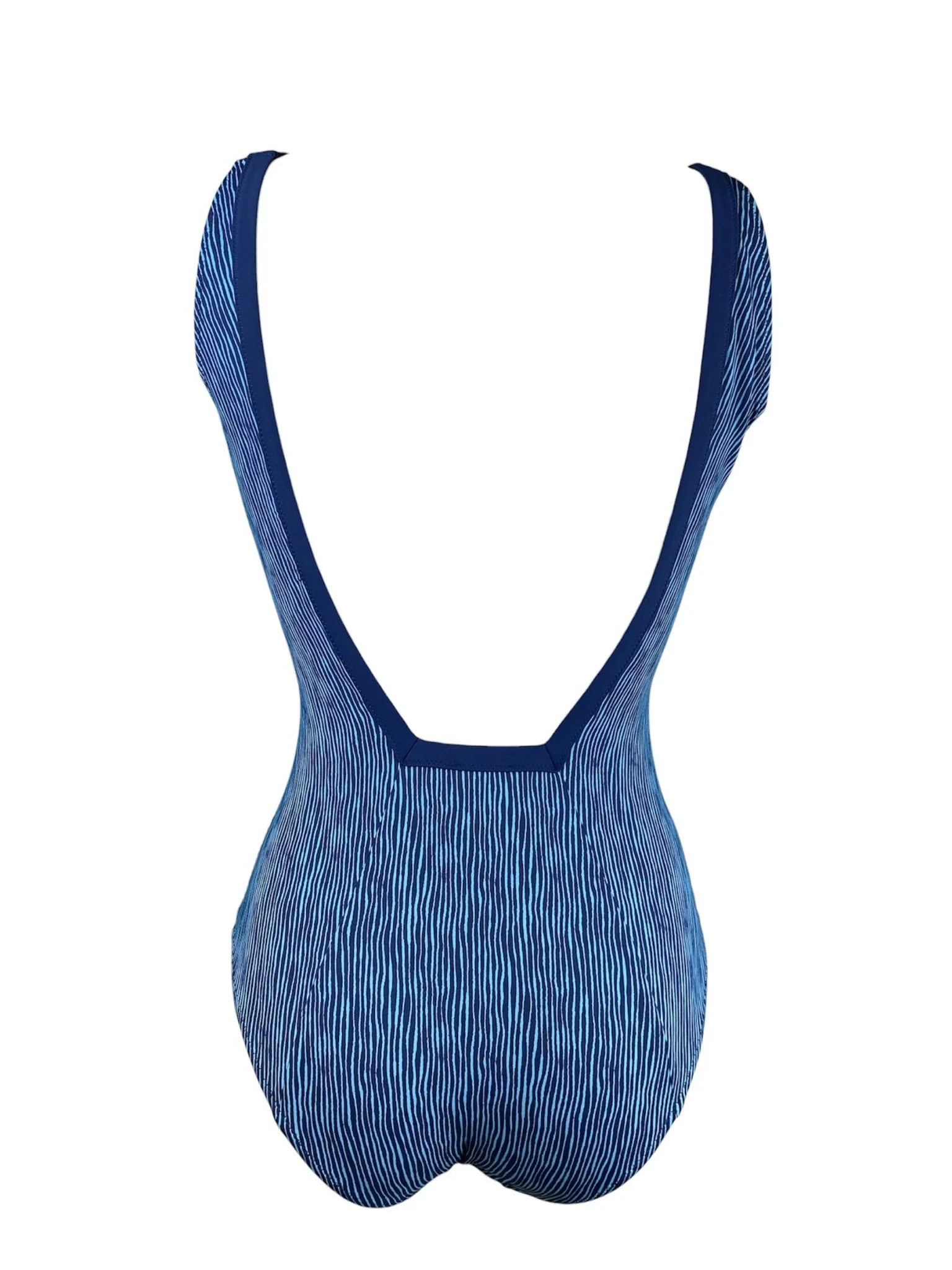 Costume intero realizzato in avvolgente tessuto microfibra e lycra che fa parte della nostra categoria Curvy. Le coppe ed il sostegno sottoseno sono messi in evidenza dal bordo in contrasto che lo rendono originale ed elegante. Leggera guainetta interna che modella la silhouette e la fantasia lavorata in orizzontale e verticale che esalta le forme […]