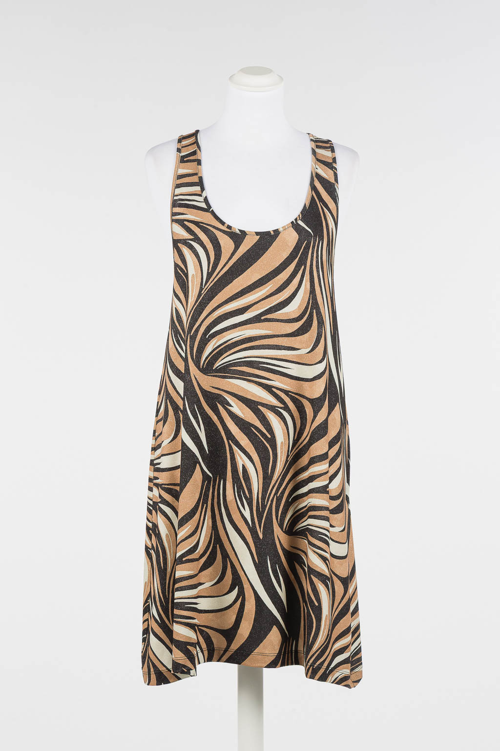 Maxi canotta Twinset donna con fantasia zebra fuxia. Vestibilitร lunga e fluida, ideale per look estivi casual. Disponibile dalla S alla XXL. Immagine puramente illustrativa.