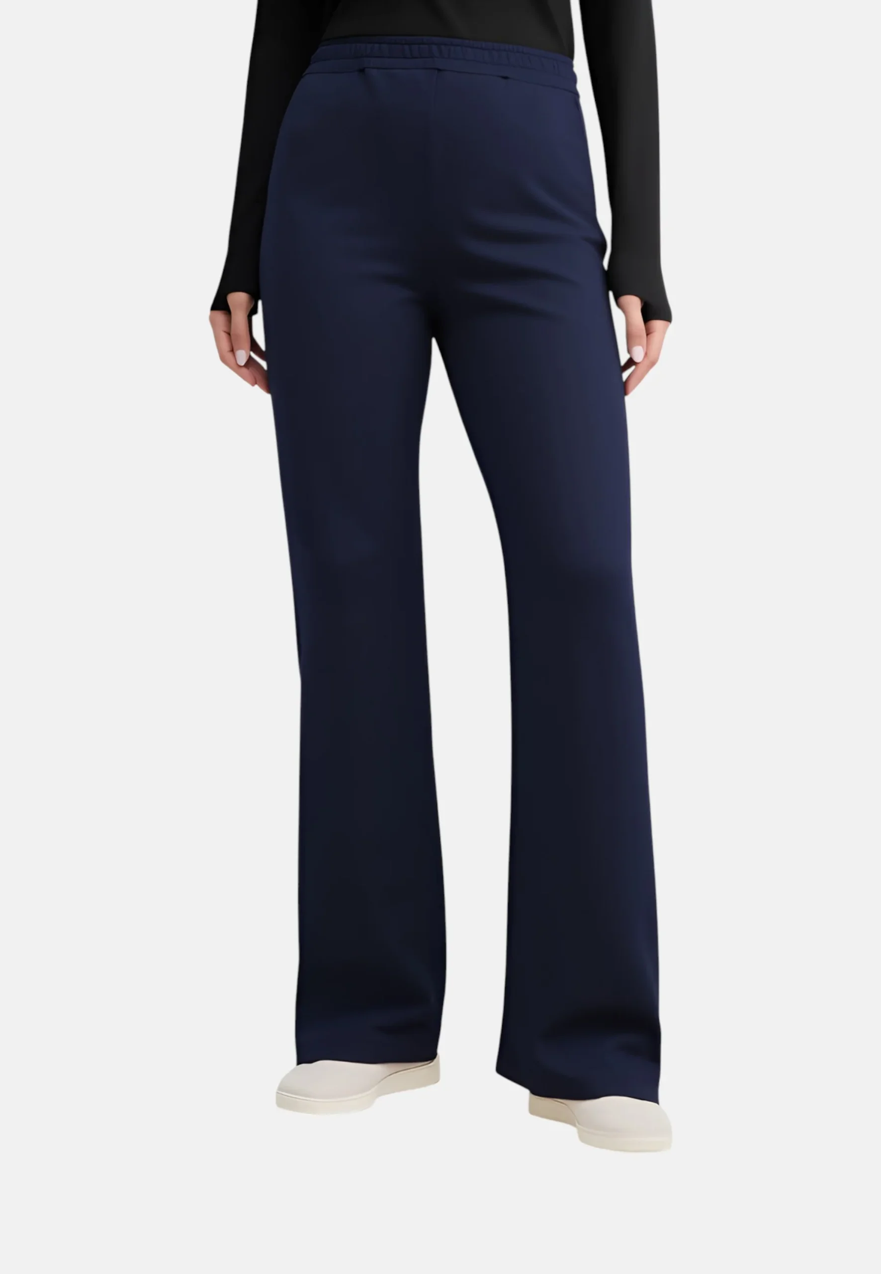 - Modello: Pantaloni con fondo largo a zampa, elastico in vita e chiusura centrale con lacci