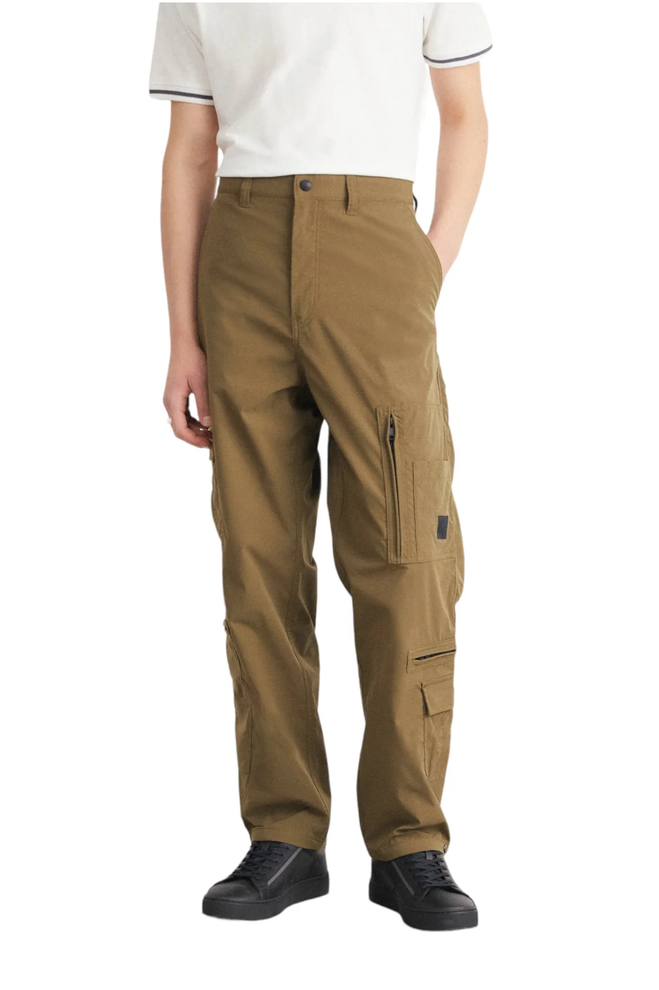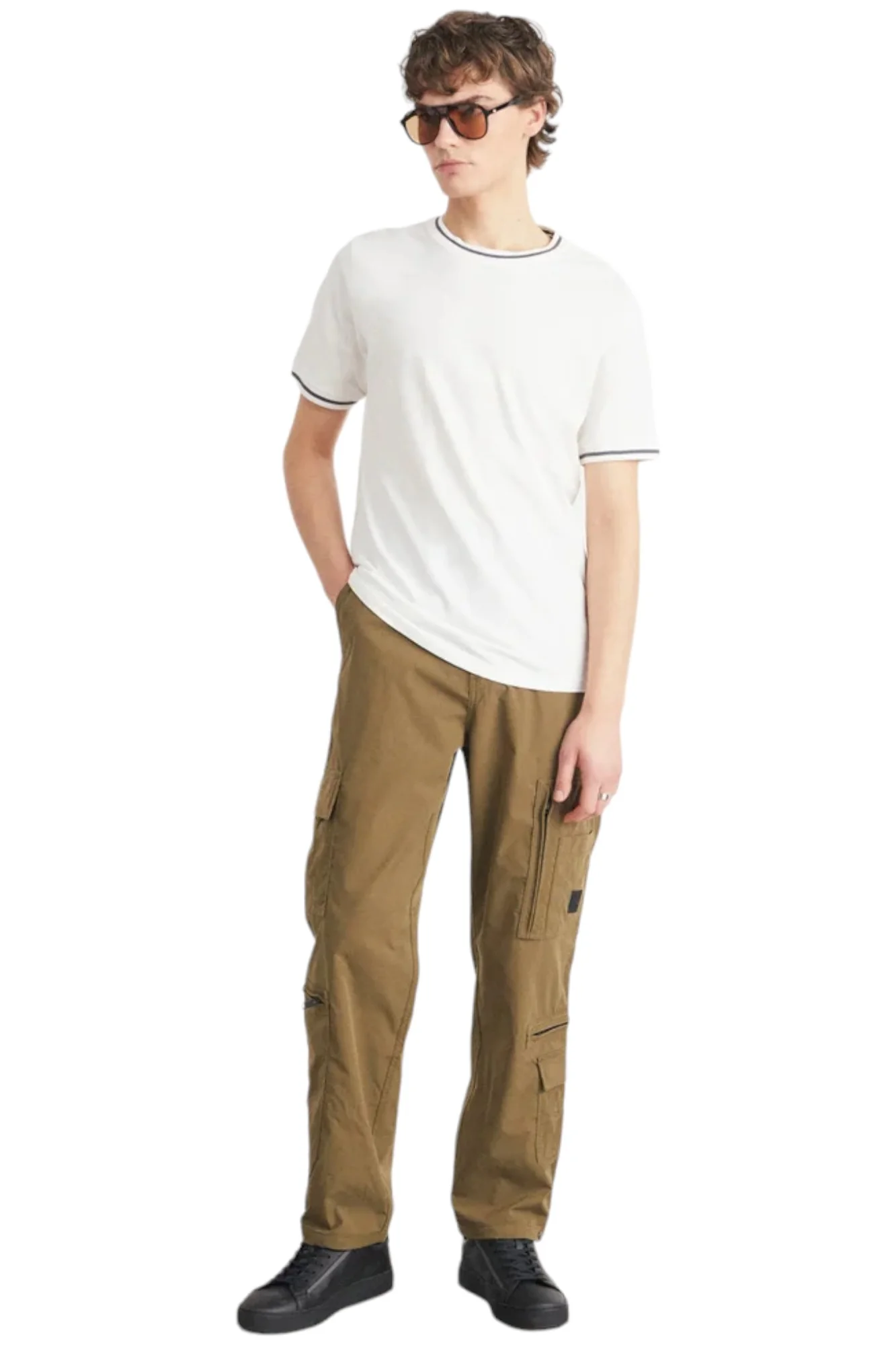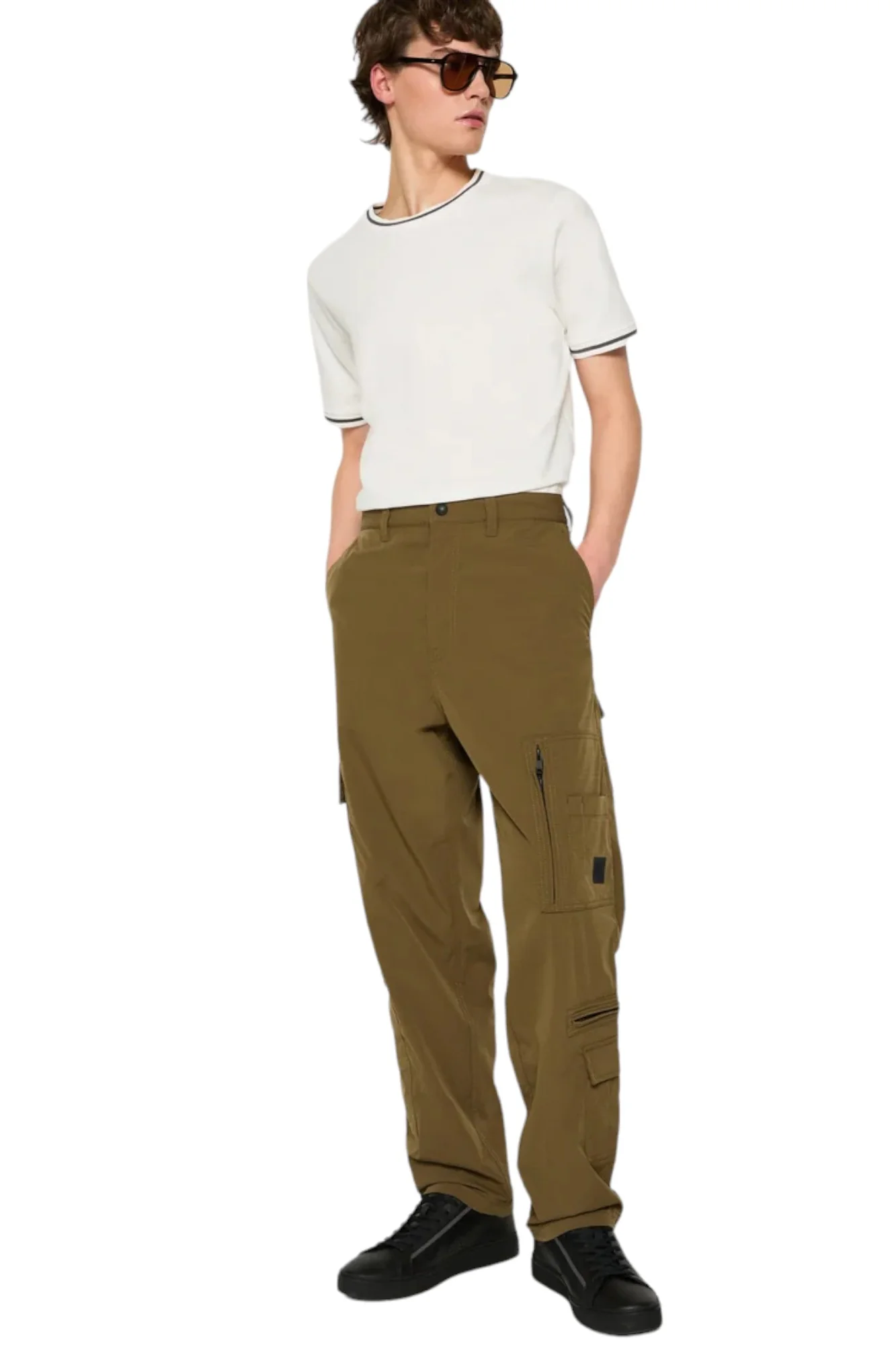 Pantaloni Cargo da uomo con logo frontale, 5 tasche frontali e 1 posteriore, chiusura centrale con bottone e zip.