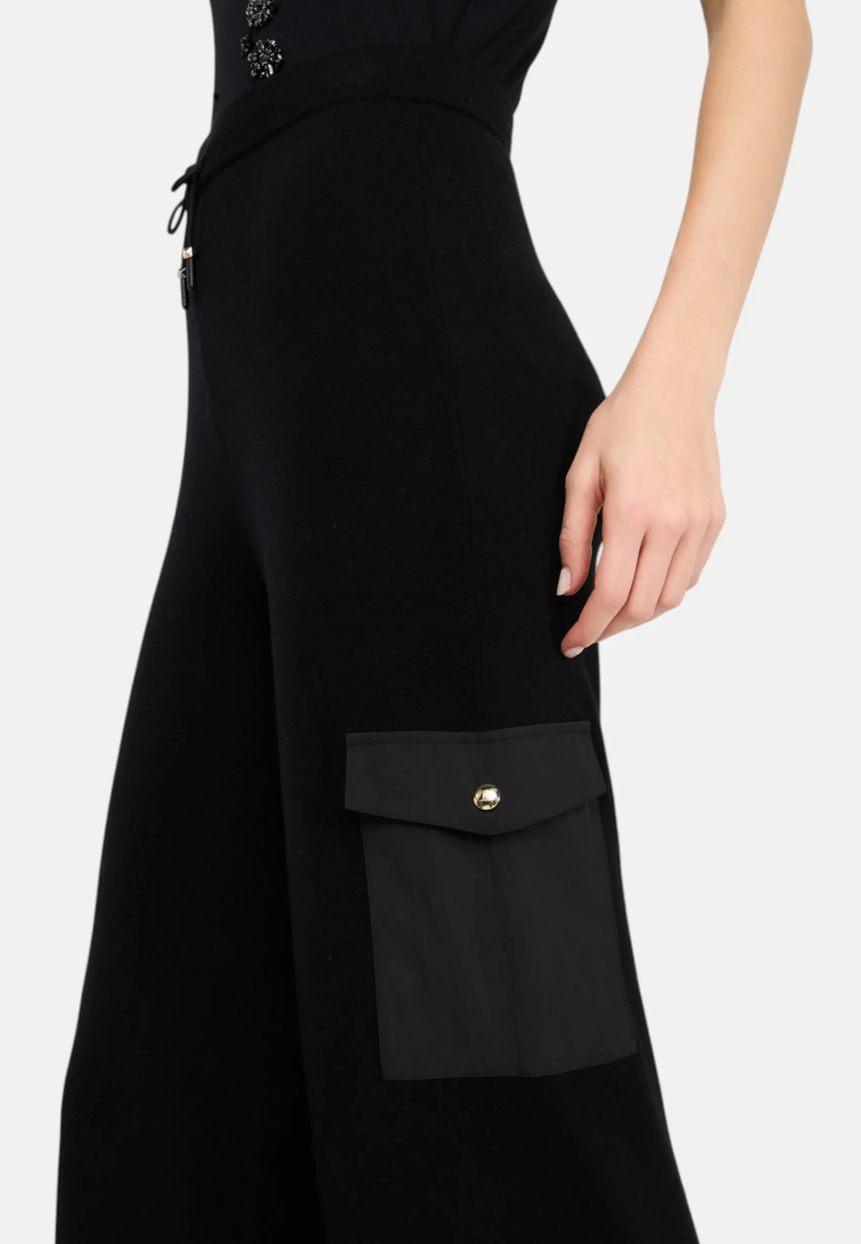 LIU.JOPantaloni jogging bianchi da donna realizzati in maglia di misto viscosa, cintone elastico con coulisse in vita e tasche cargo in nylon, Logo LJ in metallo sul retro.ComposizioneTessuto principale: 52% Poliammide, 48% ViscosaTessuto secondario: 60% Poliestere, 40% Poliammide -La modella รจ alta 170 cm e indossa la taglia S Cod_Art: TF5041MS75L