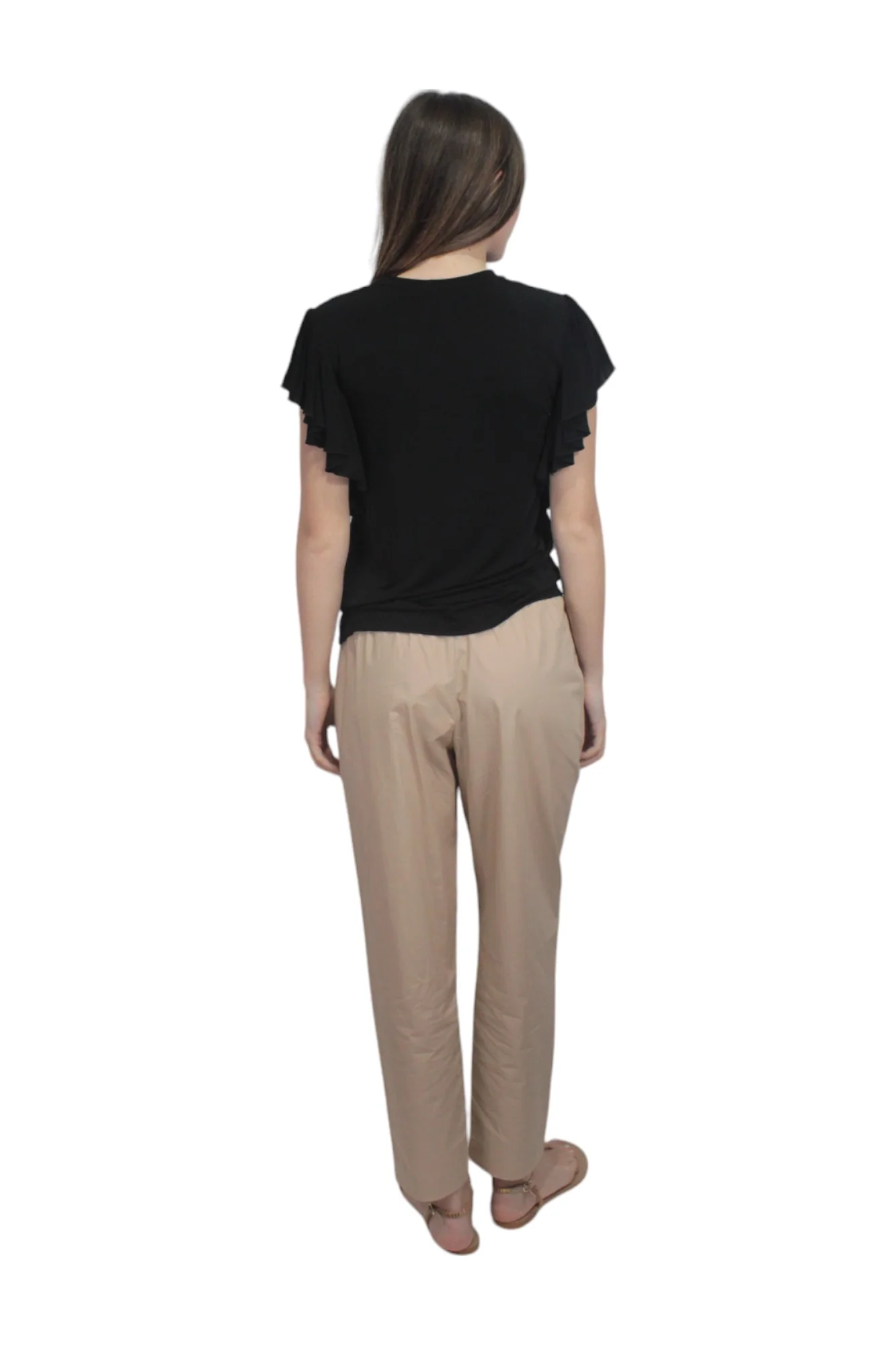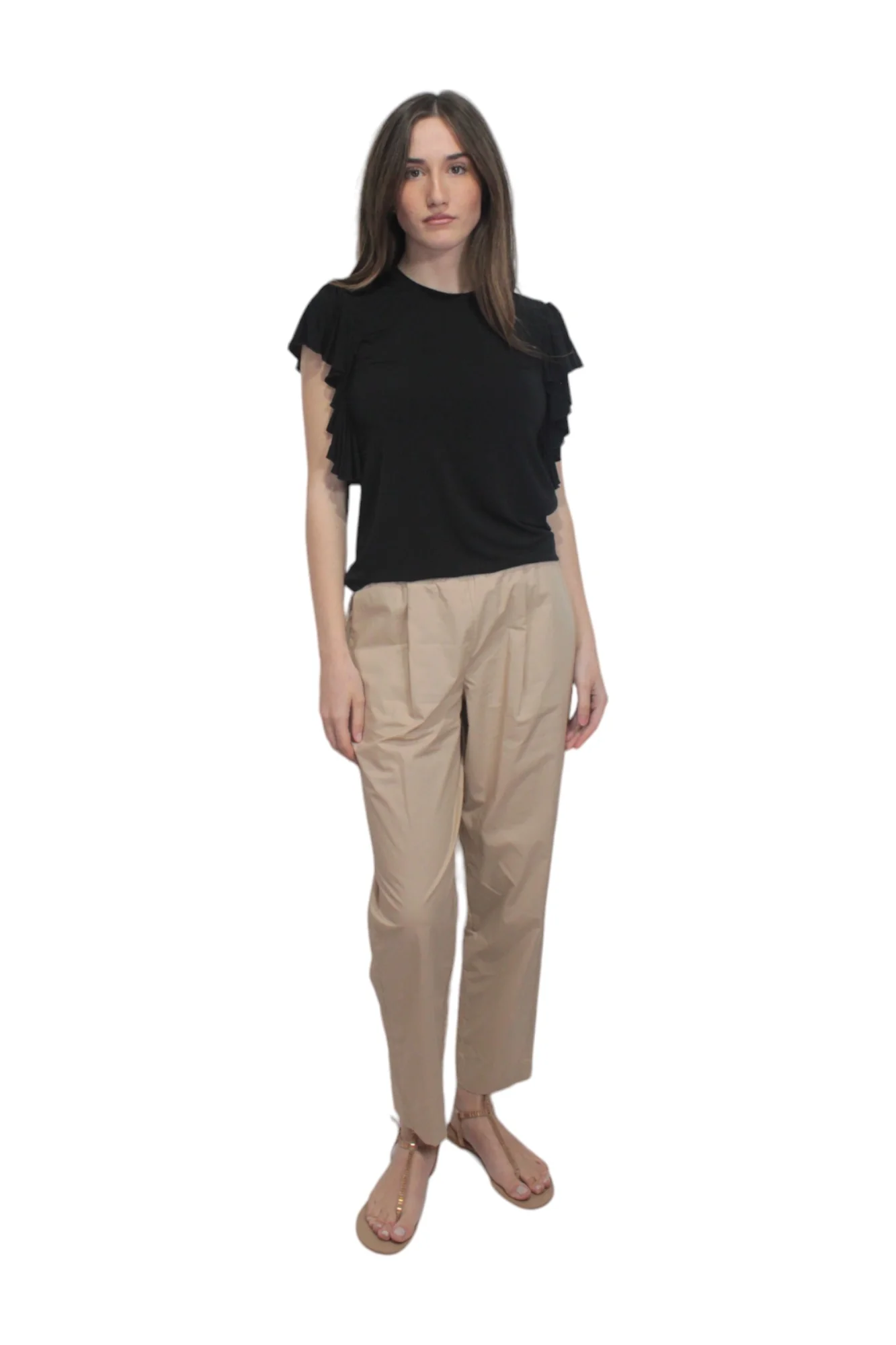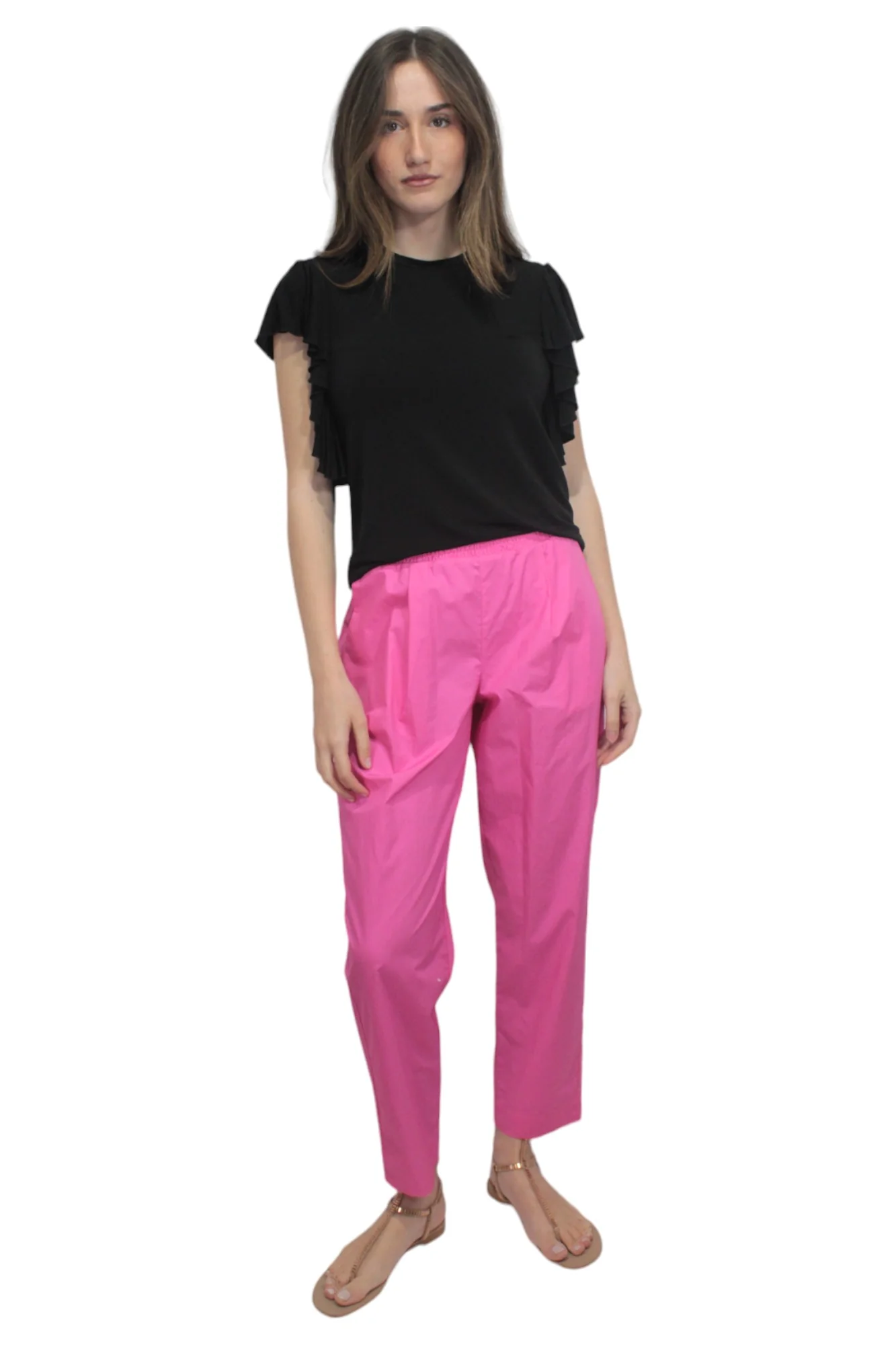 Pantaloni a palazzo da donna in cotone con elastico in vita e tasche alla francese e logo.
