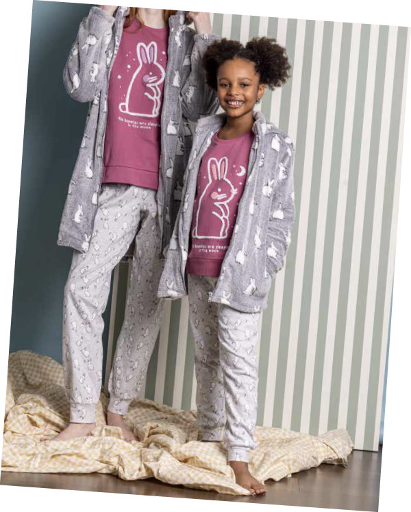 Il Pigiama Bimba Paricollo con Stampa coniglio รจ lโabbigliamento notturno ideale per le piccole sognatrici! Realizzato in morbido cotone, questo pigiama offre comfort e freschezza per garantire notti serene e riposanti.