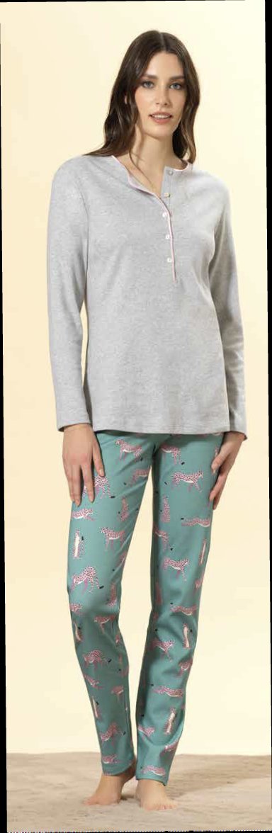 Il pigiama donna a serafino in interlock Bisbigli offre comfort e stile grazie al morbido tessuto interlock. Con un design serafino e scollo a bottoni, รจ perfetto per le notti fresche, garantendo una vestibilitร comoda e pratica. Ideale per chi cerca relax e qualitร .