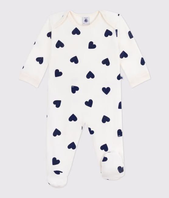 Pigiama in cotone con apertura senza automatici e cuore stampato neonato