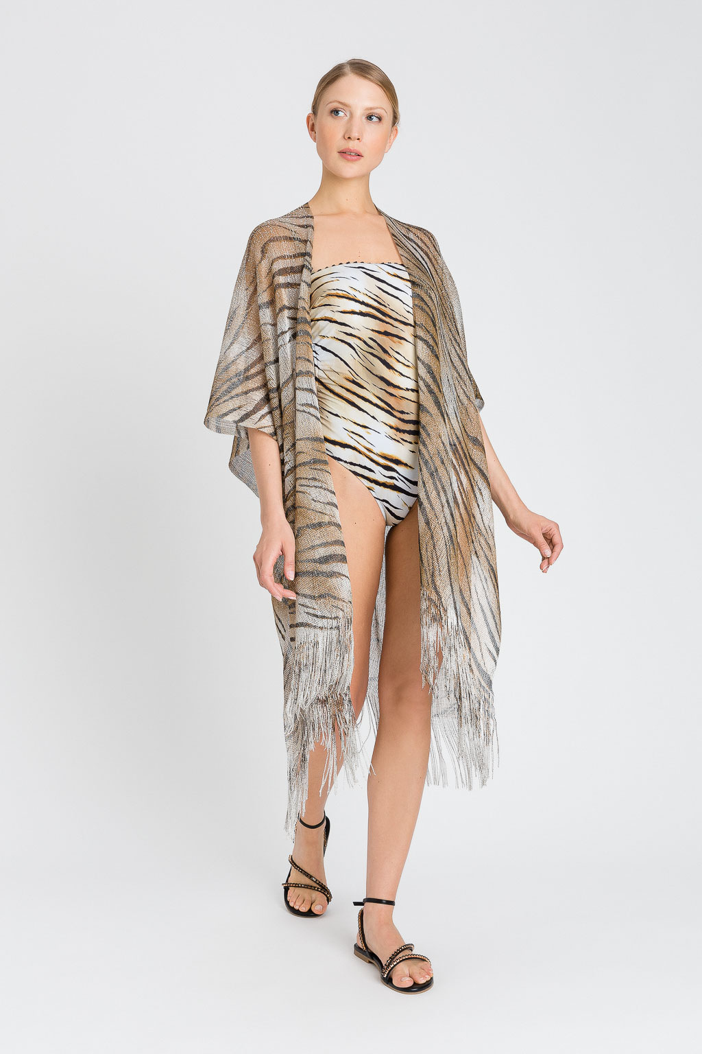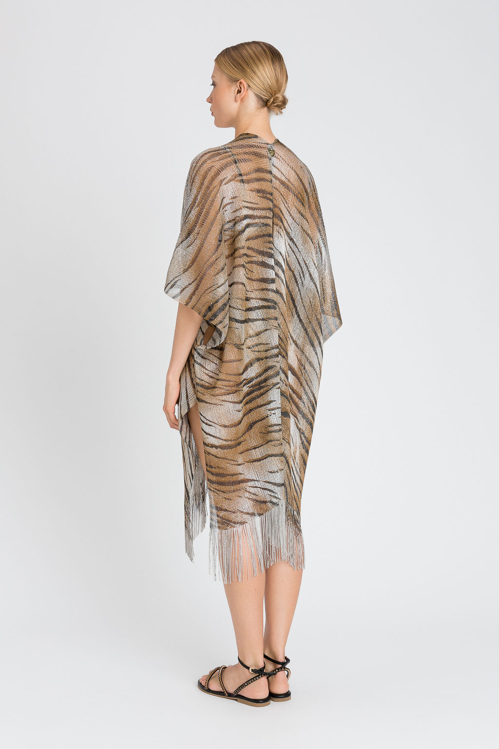 Completa il tuo look da spiaggia con questo poncho in fantasia animalier.