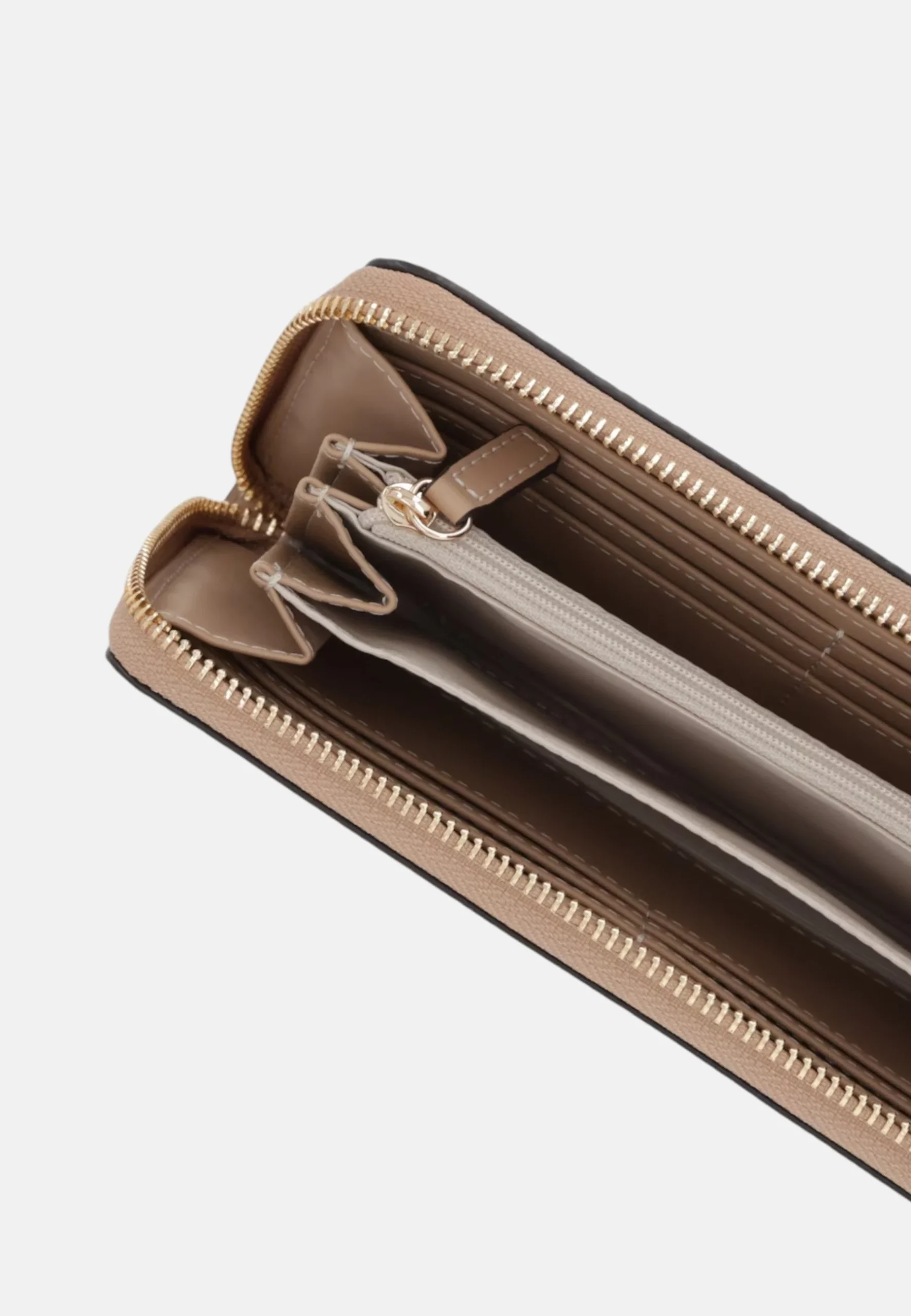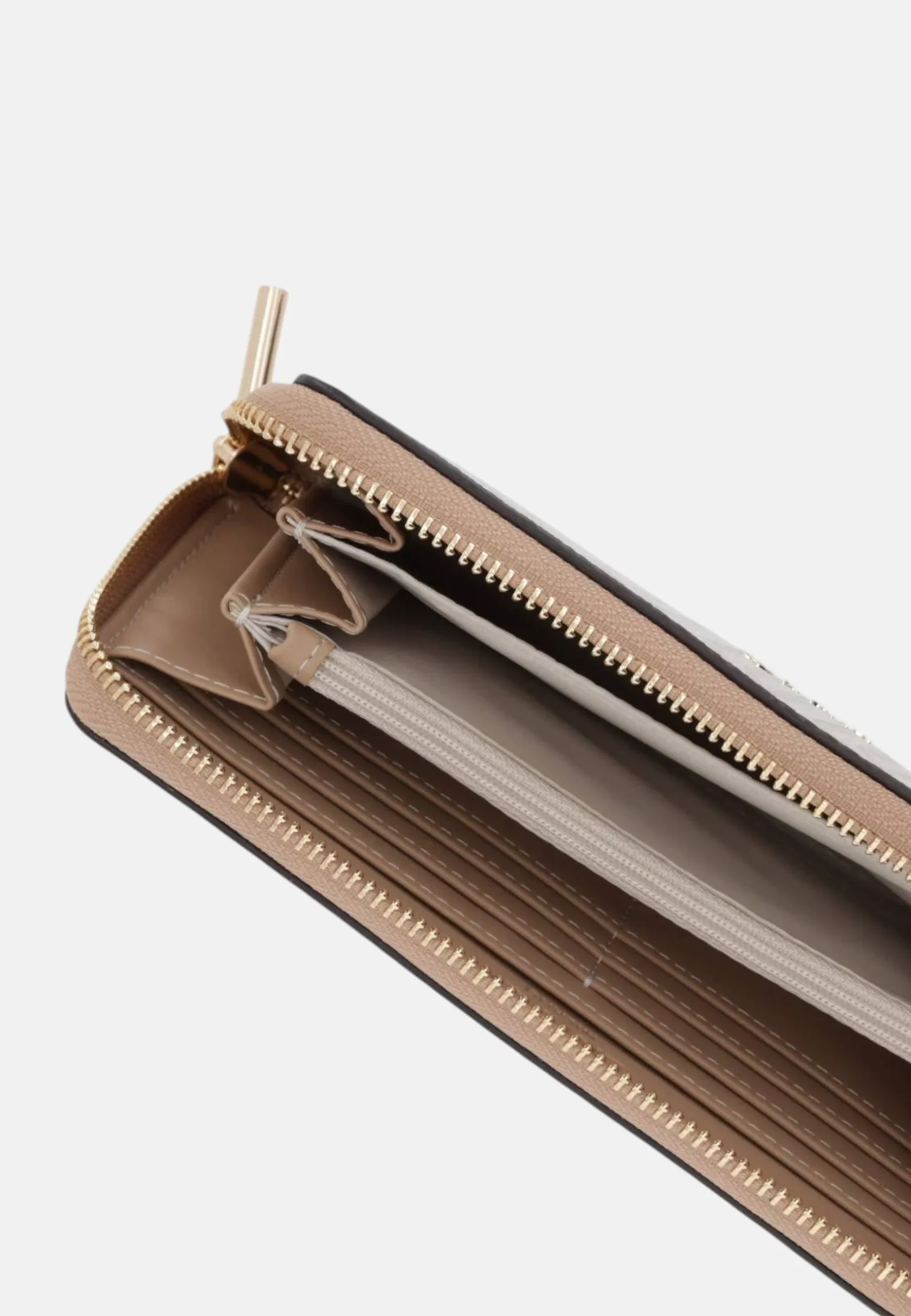 - Modello: Portafogli con logo frontale, chiusura centrale con zip ed interni con la presenza di scomparti Porta carte, Porta banconote e porta monete