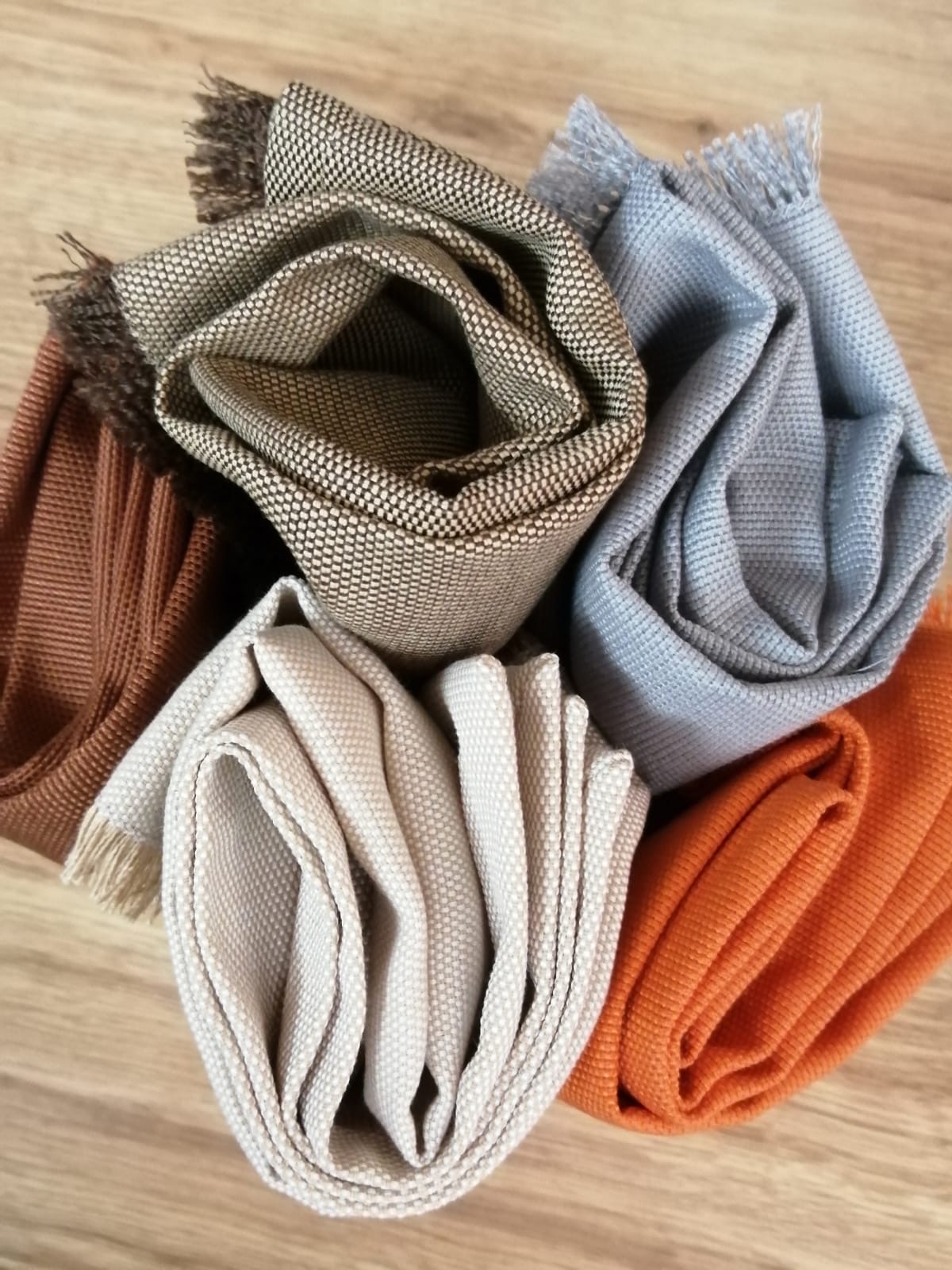 - Tessuti naturali, colori in palette: terracotta, beige chiaro, verde salvia, bludenim, blu sporco