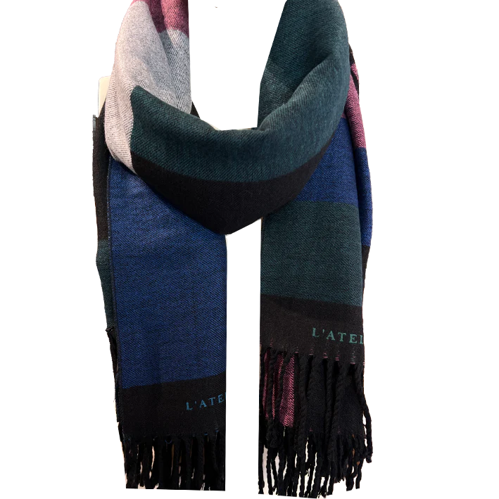 Il mix armonioso di nero, verde petrolio, blu, viola e grigio crea un gioco cromatico elegante e contemporaneo, perfetto sia per il giorno che per la sera.