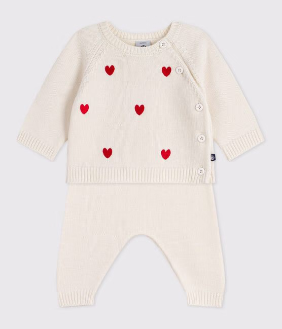 Set 2 pezzi in maglia con cuori ricamati neonato