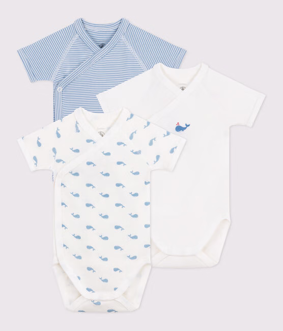 Set da 3 body incrociati a maniche corte in tessuto a costine 1×1, un tessuto elasticizzato e comodo.