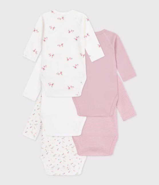 Set di 5 body incrociati a maniche lunghe neonata a costine 1×1, un tessuto elasticizzato e comodo.