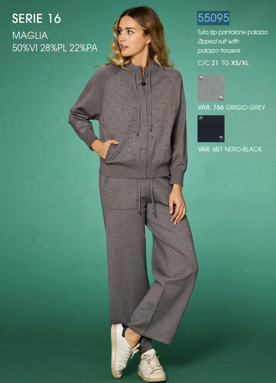 La tuta con zip e pantalone palazzo รจ il capo perfetto per chi ama unire praticitร e raffinatezza. Morbida, confortevole e dal taglio moderno, รจ pensata per accompagnarti in ogni momento della giornata con uno stile impeccabile e un tocco di eleganza rilassata.