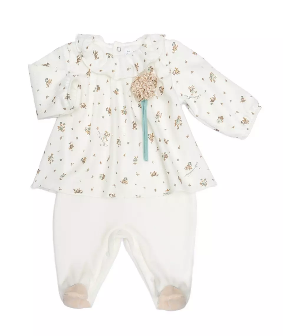 Tutina in ciniglia e viscosa con spilla pompon Barcellino