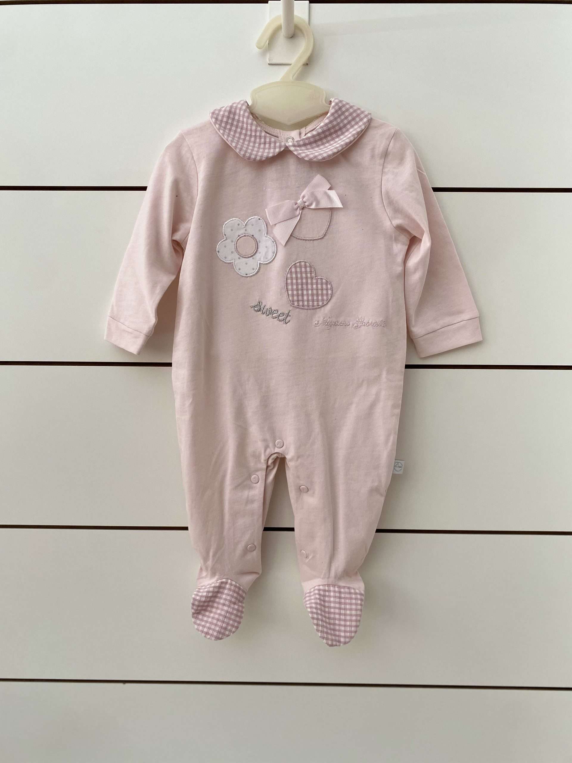 Tutina intera con piedini in cotone jersey, con colletto, apertura sul retro e tra le gambe. Taglia 2 (3/6 mesi)